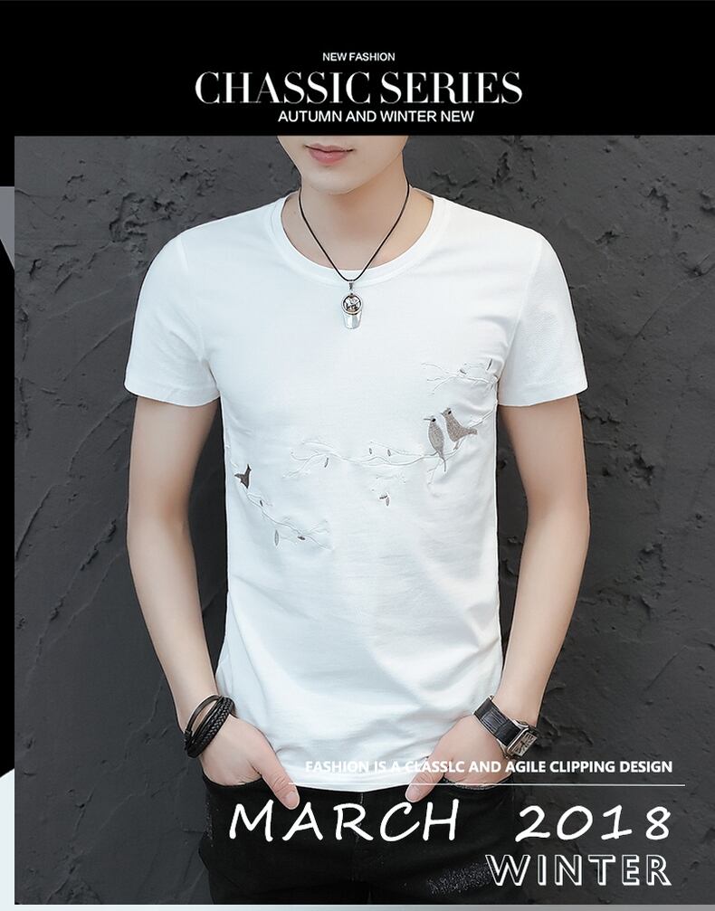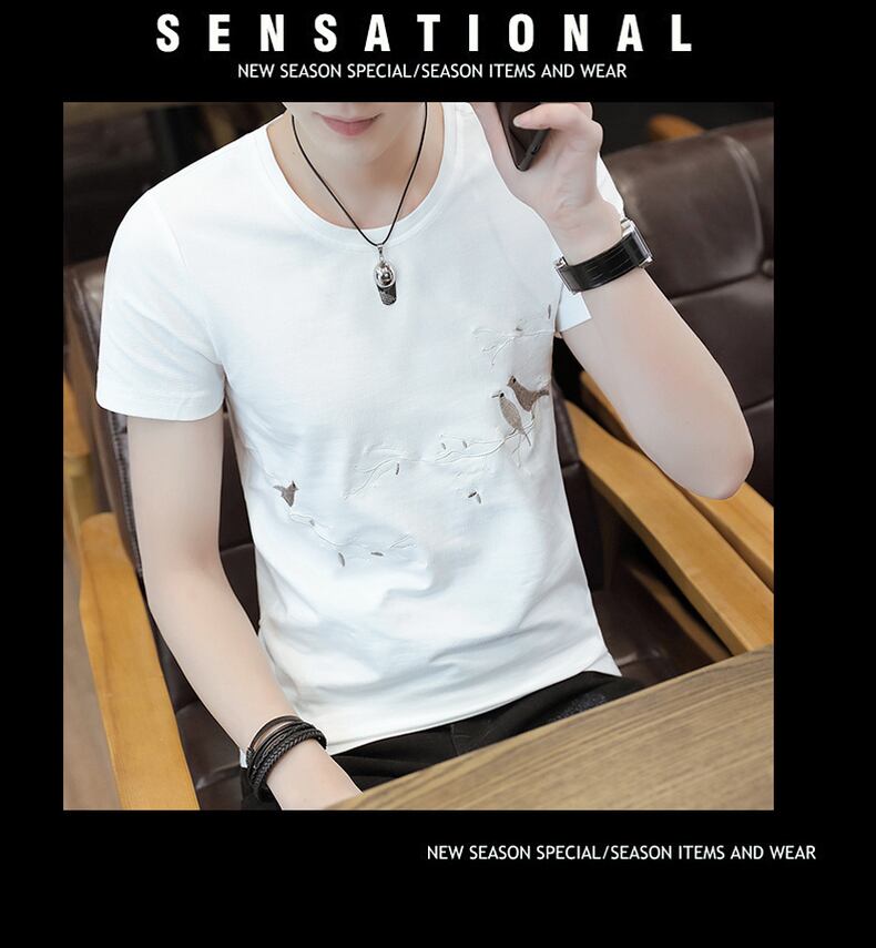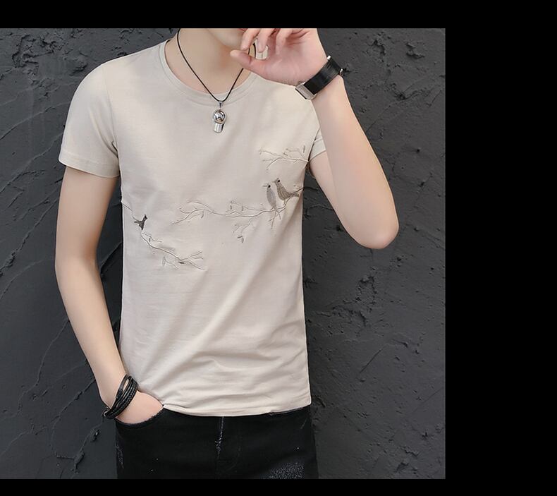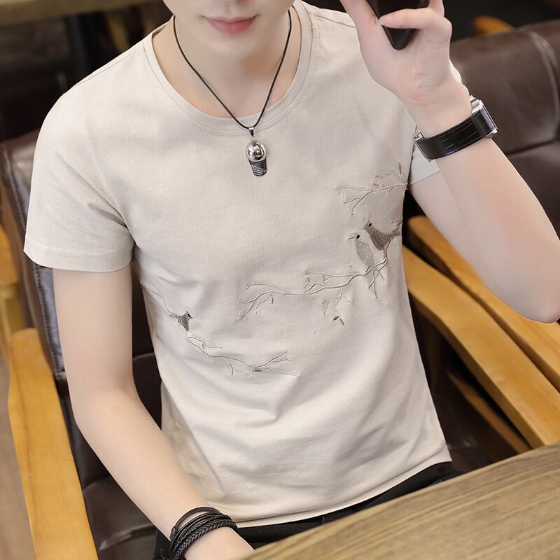 Short Sleeve T-Shirt Men's Cotton Round Neck 2022 Summer Style Slim Embroidered Half Sleeve Trend Men's ショート レッド コットン 半袖 ハーフスリーブ 刺繍 サマー 夏物 Oネック スリム Tシャツ doushi427389911