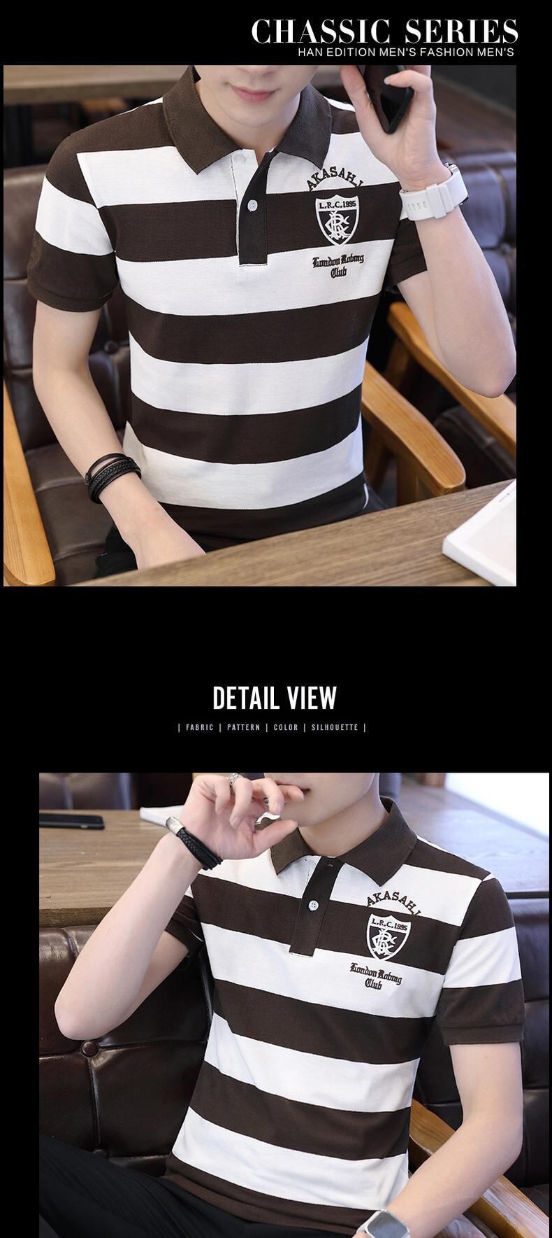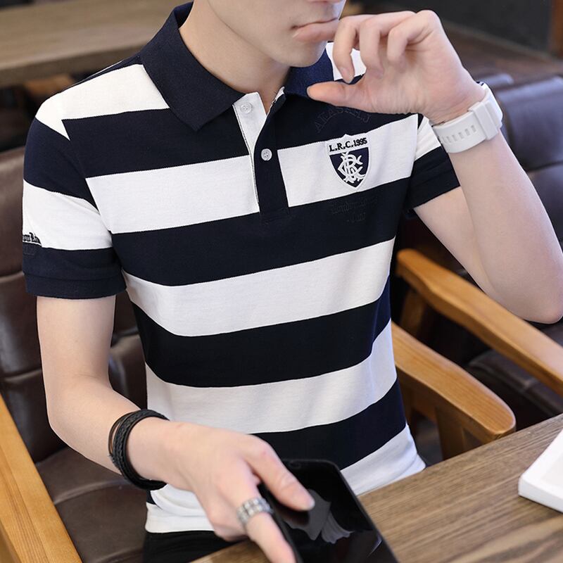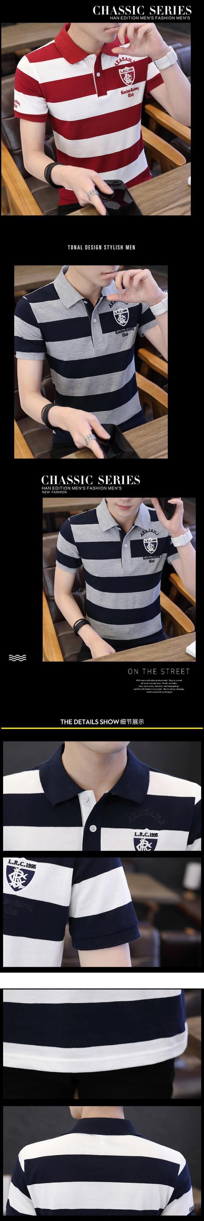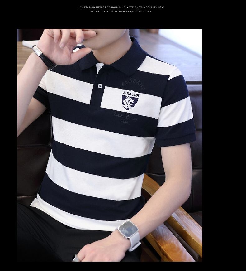 POLO shirt men's short-sleeved T-shirt summer dress new men's shirt collar cotton half-sleeve top clothes striped ins tide t-shirt コットン サマー 夏物 ストライプ Tシャツ doushi4341710534