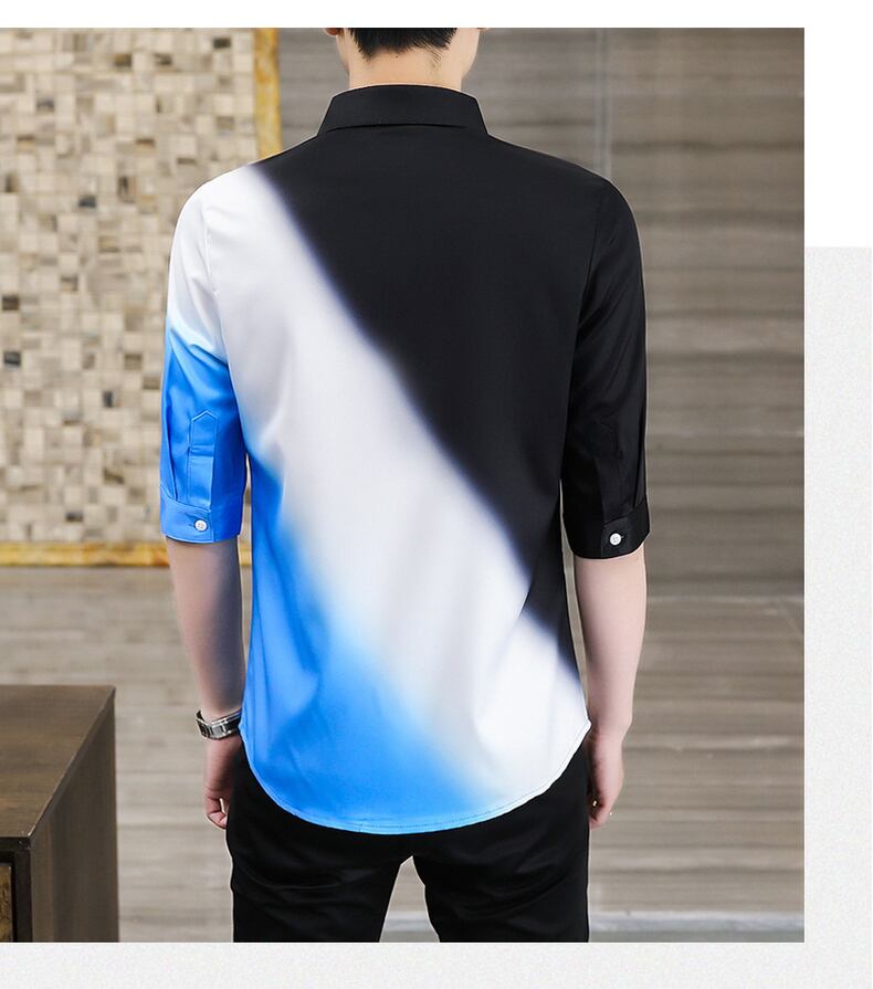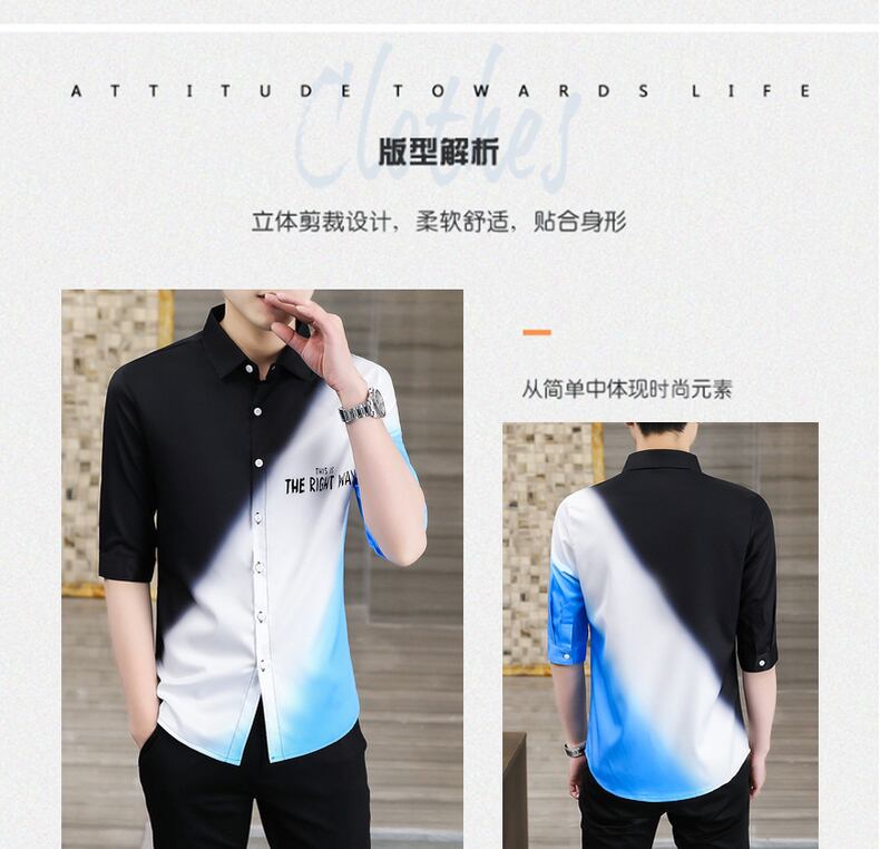 Color matching short-sleeved shirt men's casual trend five-point mid-sleeve inch shirt summer 2022 new handsome slim shirt カジュアル サマー 夏物 スリム doushi75168238629