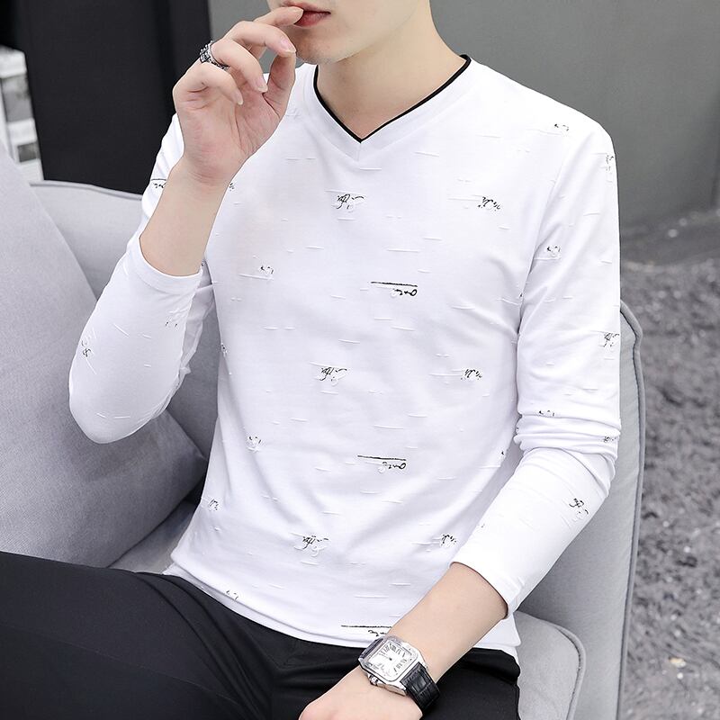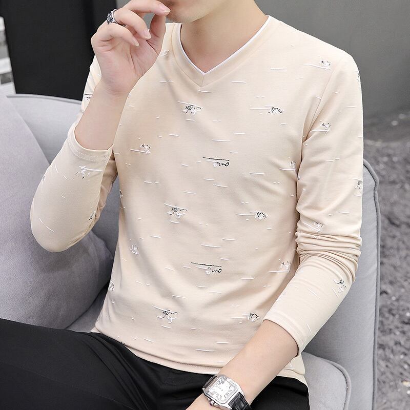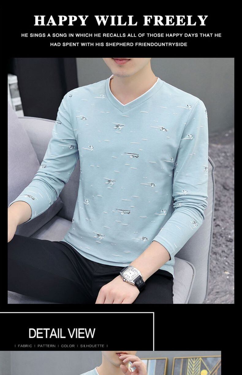 2022 new spring and autumn men's all-match V-neck long-sleeved t-shirt striped tide brand cotton casual slim fit shirt ロング コットン カジュアル スプリング 春物 オータム 秋物 Vネック ストライプ スリム Tシャツ doushi14117833469