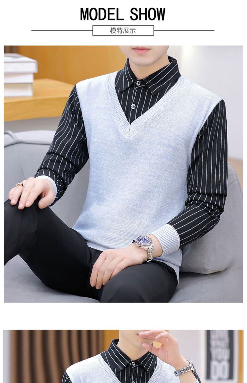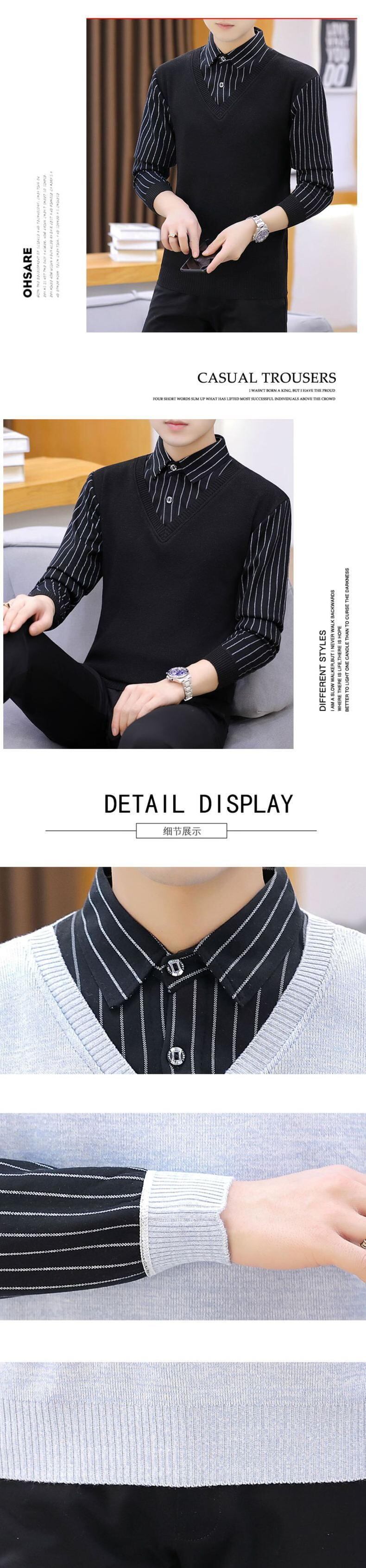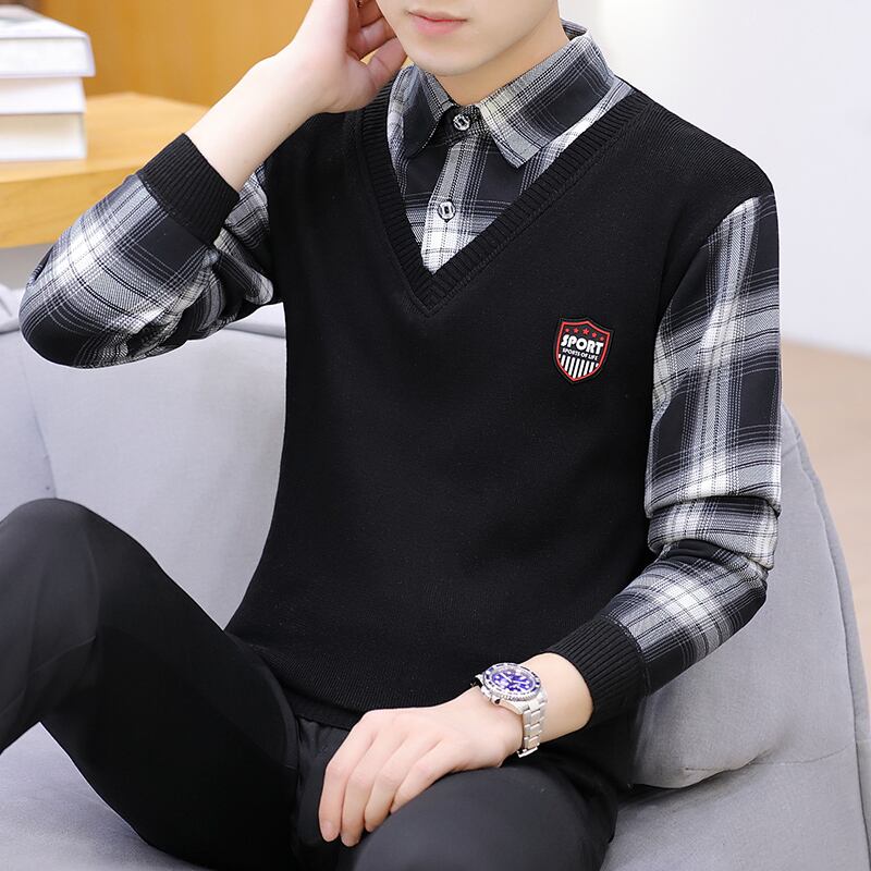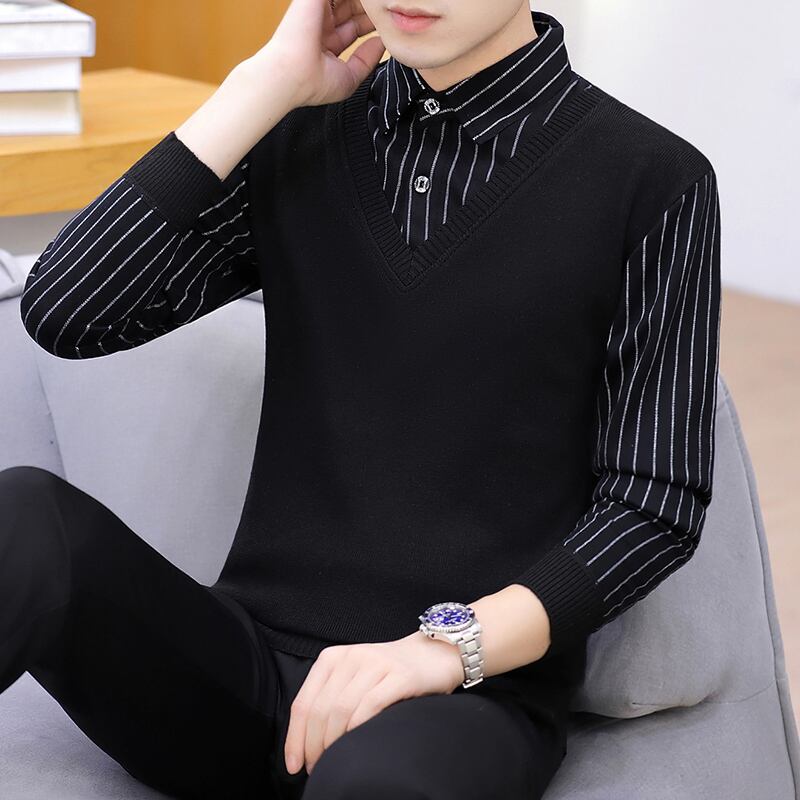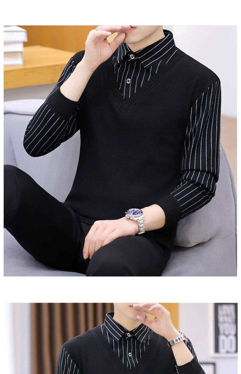 Autumn and winter holiday two-piece shirt-collar sweater men's plus velvet thick knitted bottoming shirt trend line collar collar autumn clothing オータム 秋物 ウィンター 冬物 doushi92398200250