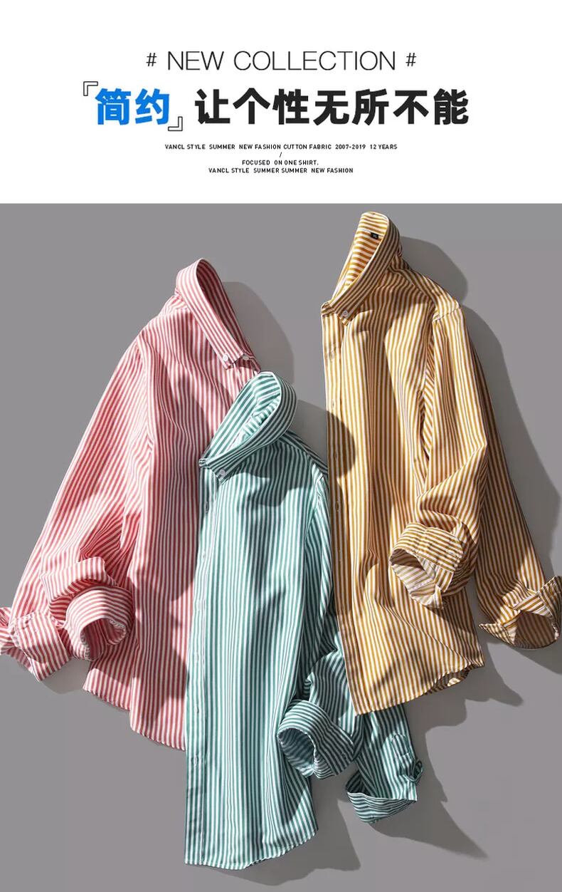 Black and white striped casual shirt men's long-sleeved summer British style slim shirt spring and autumn version of the trend top clothes ロング ホワイト ブラック カジュアル スプリング 春物 サマー 夏物 オータム 秋物 ストライプ スリム doushi95701331095
