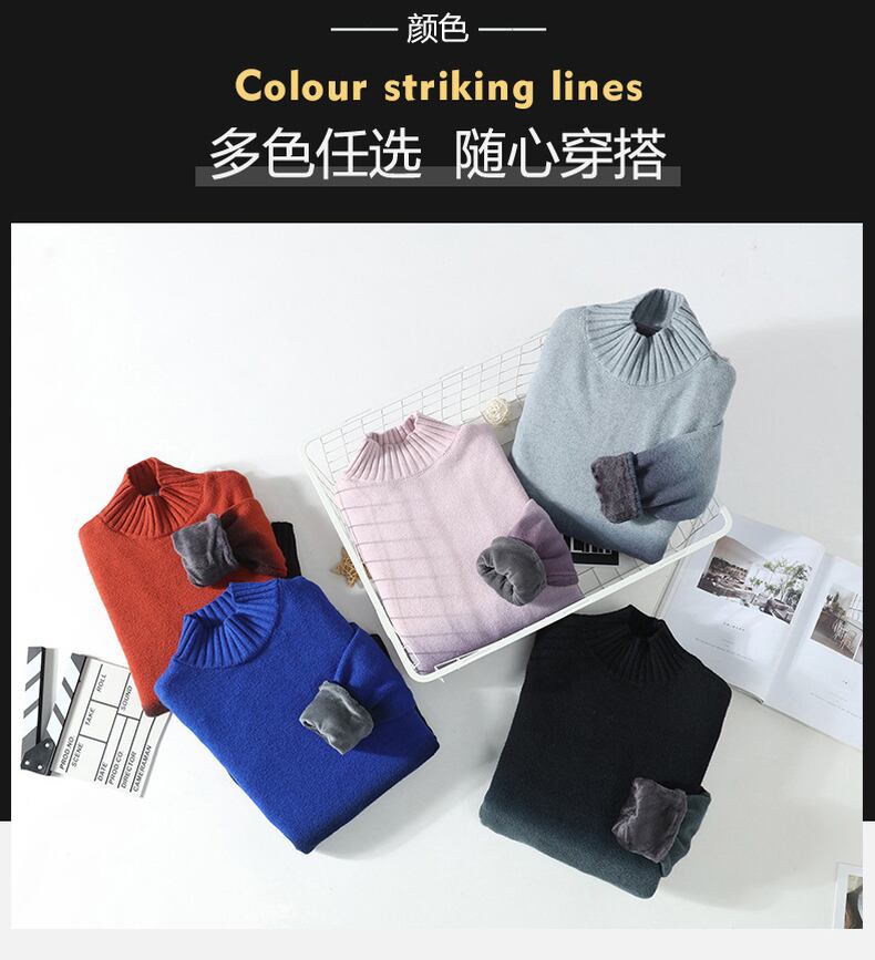 Autumn and winter new sweater men's half turtleneck sweater trend loose sweater plus velvet thick warm bottoming shirt オータム 秋物 ウィンター 冬物 doushi32440170501