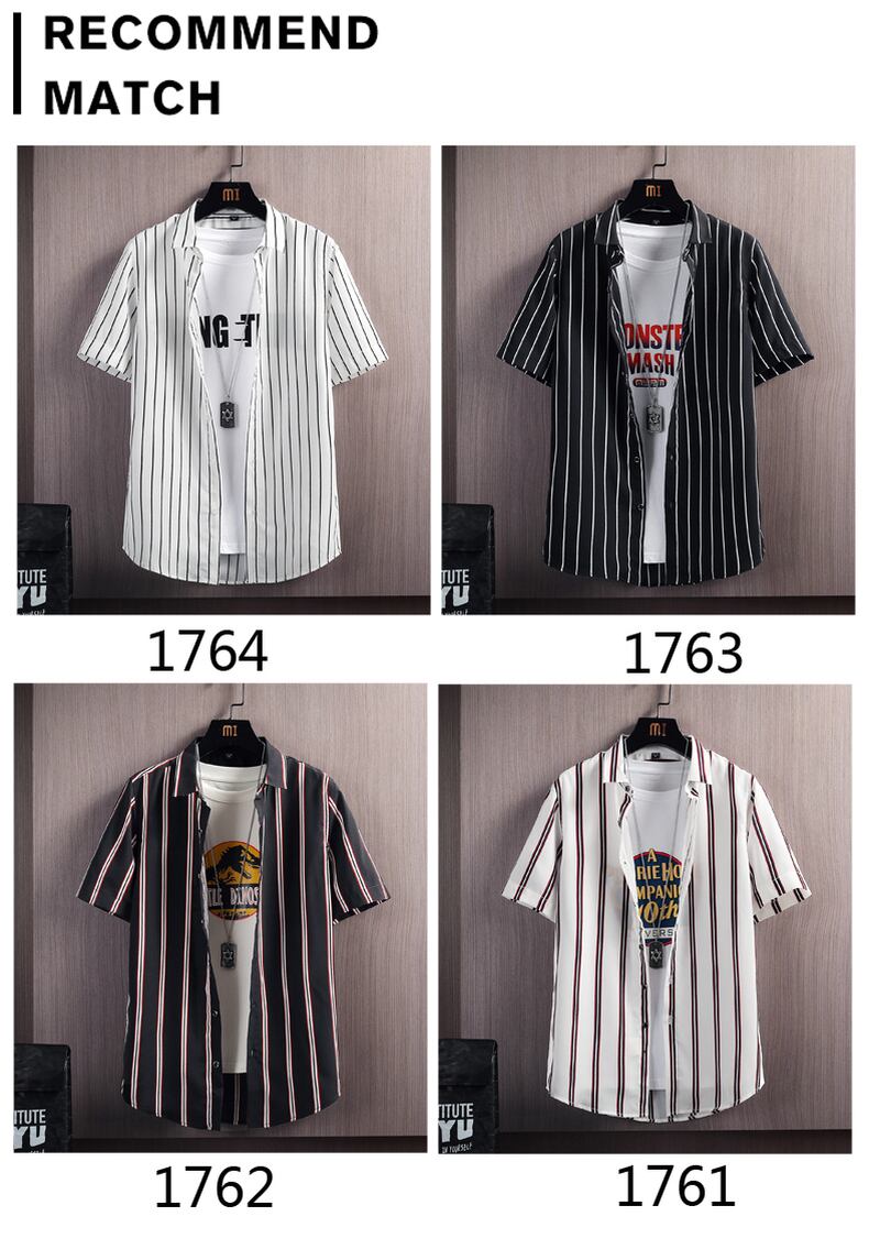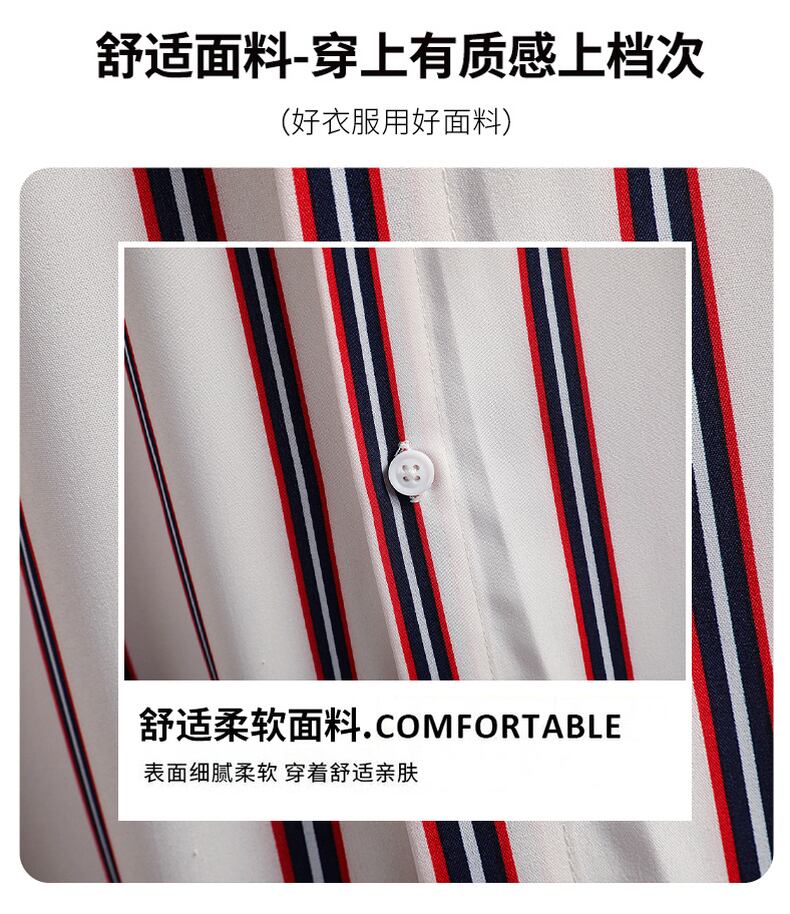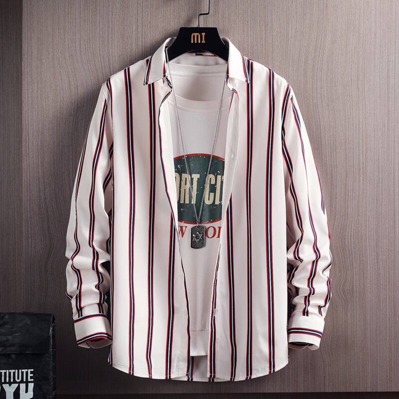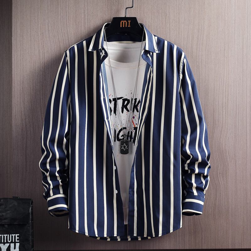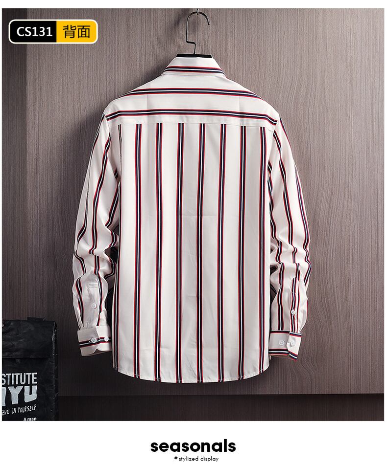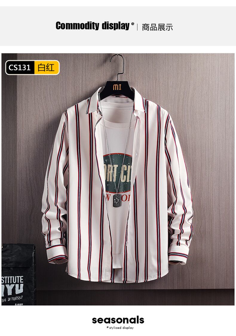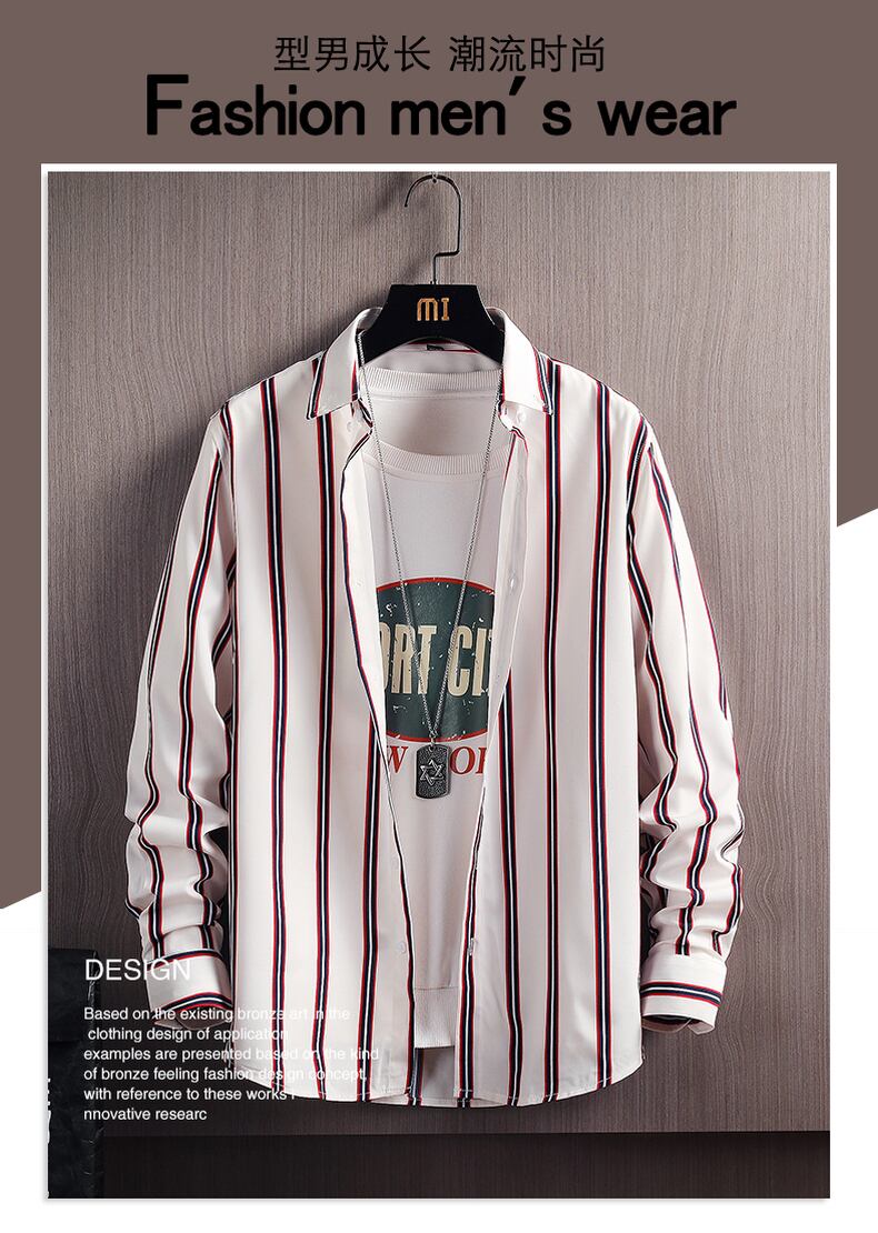 Ice silk shirt men's long-sleeved summer thin section student striped drape inch shirt top spring and autumn casual shirt coat ロング カジュアル スプリング 春物 サマー 夏物 オータム 秋物 ストライプ シルク doushi91312889471