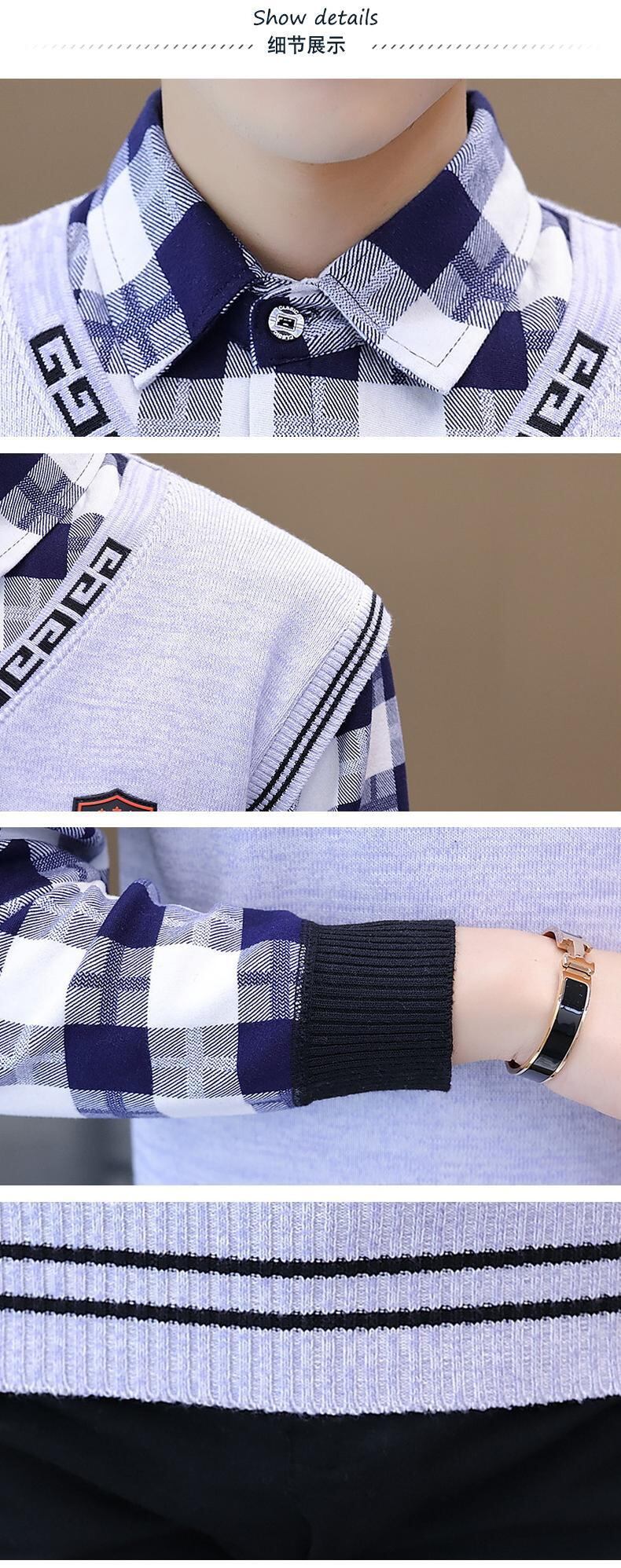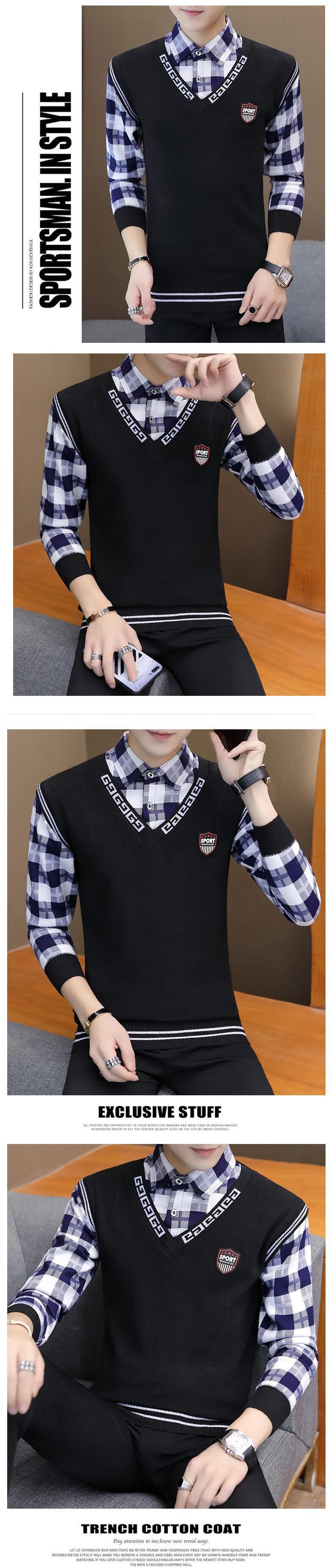 Autumn and winter sweater men's fake two-piece shirt collar autumn knitted sweater plus velvet thick warm top collar collar オータム 秋物 ウィンター 冬物 doushi15146871360