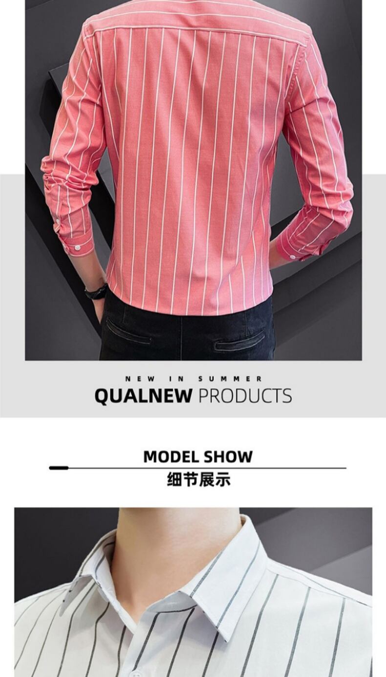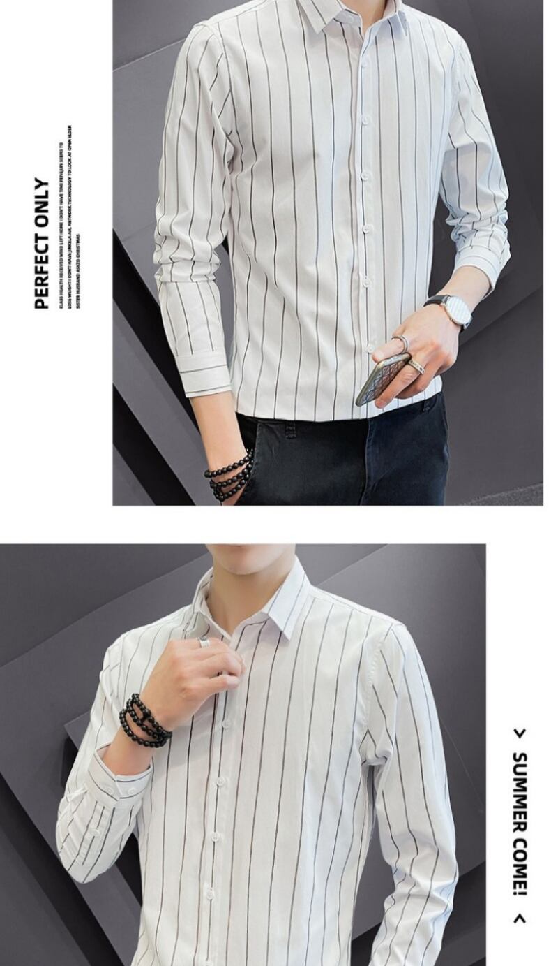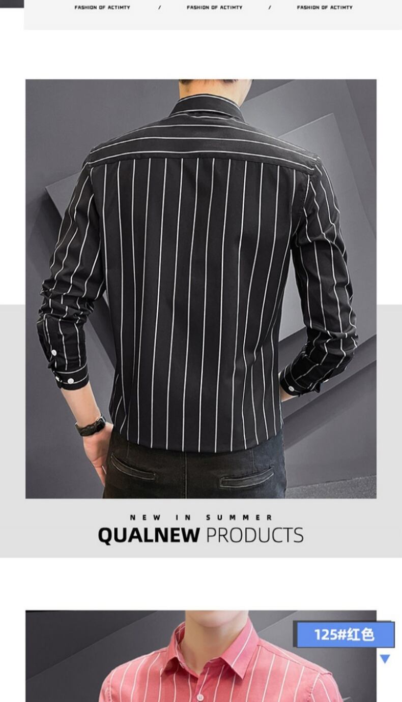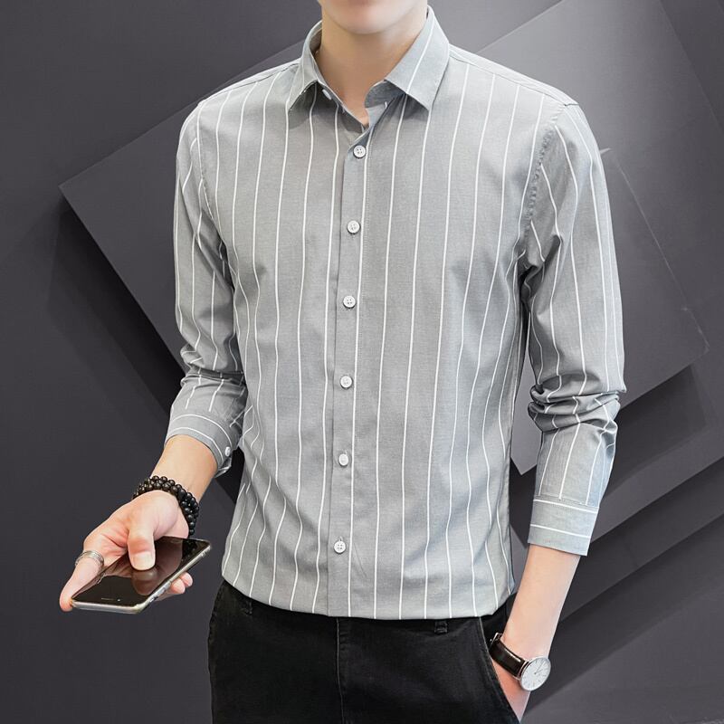 Long-sleeved shirt men's winter plus velvet thickened slim striped shirt autumn and winter models high-end handsome white inch shirt men ロング ホワイト オータム 秋物 ウィンター 冬物 ストライプ スリム doushi71621703240