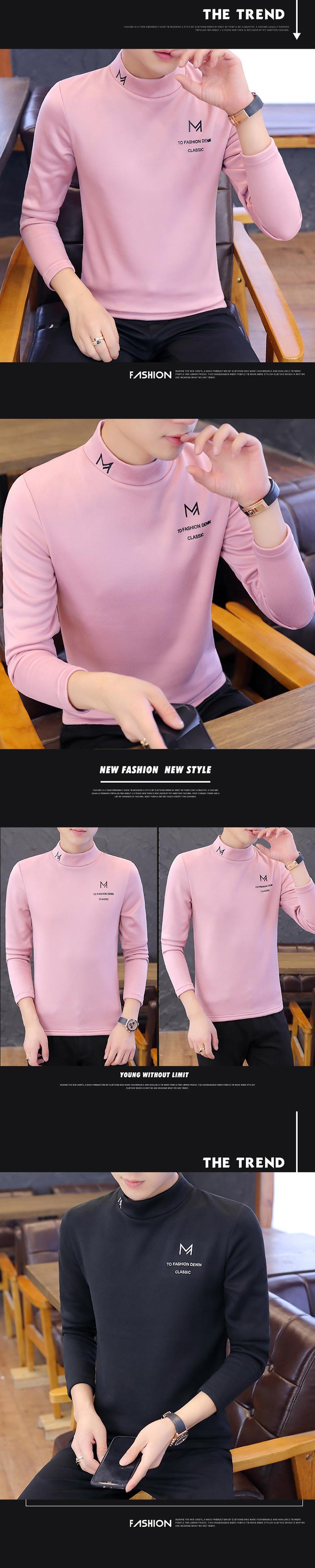Men's long-sleeved t-shirts autumn and winter clothing teenagers plus velvet semi-high collar trend bottoming shirts warm autumn clothes top clothes ロング シャツ オータム 秋物 ウィンター 冬物 Tシャツ doushi53653312306