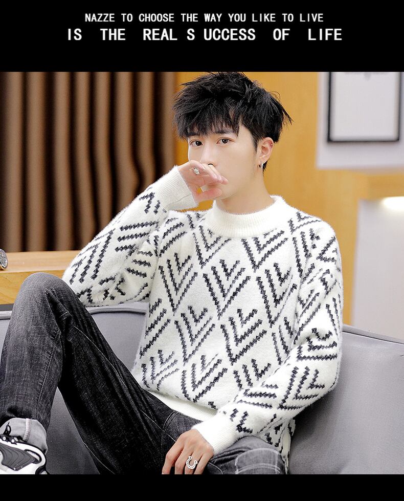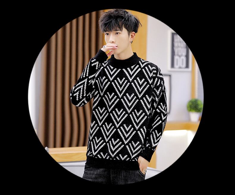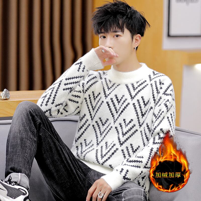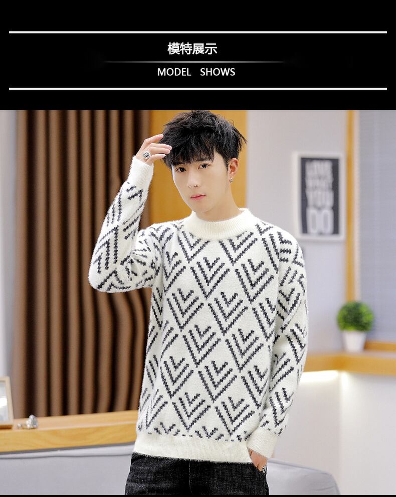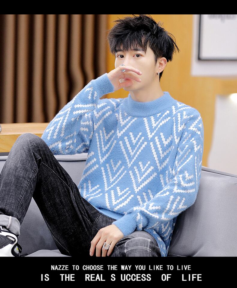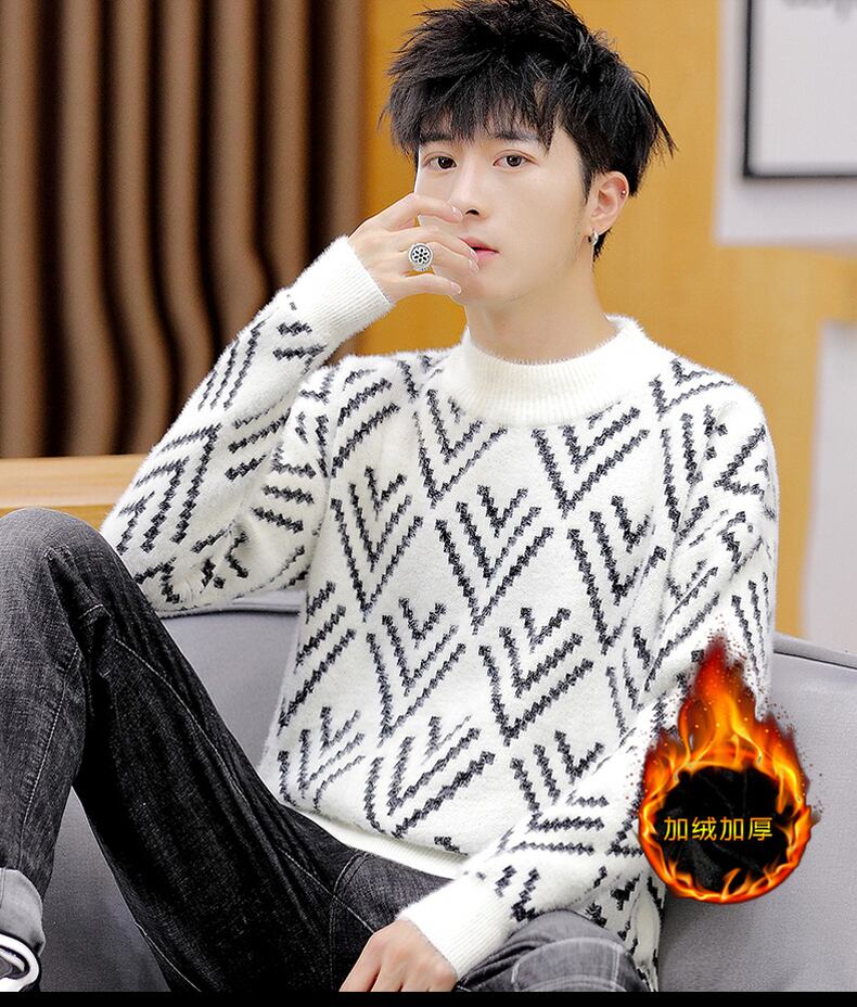 Autumn and winter fleece thickened half turtleneck sweater men's version trend pullover warm knitted bottoming shirt men's clothing オータム 秋物 ウィンター 冬物 doushi50615276043