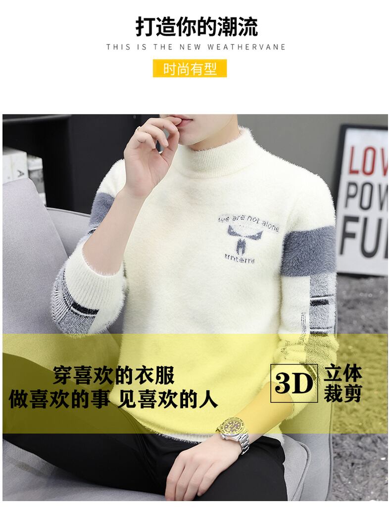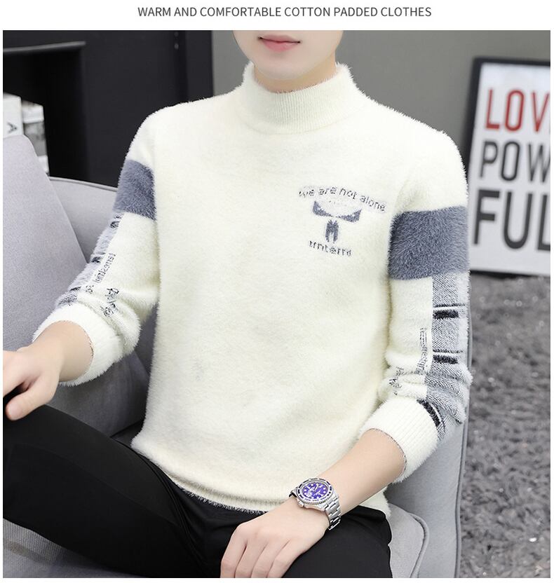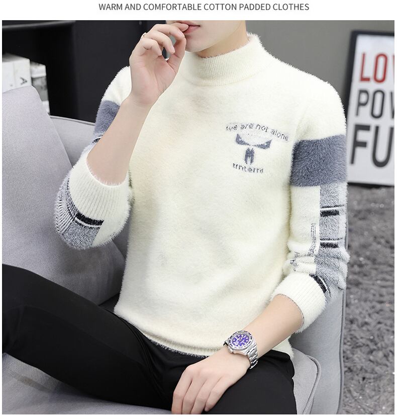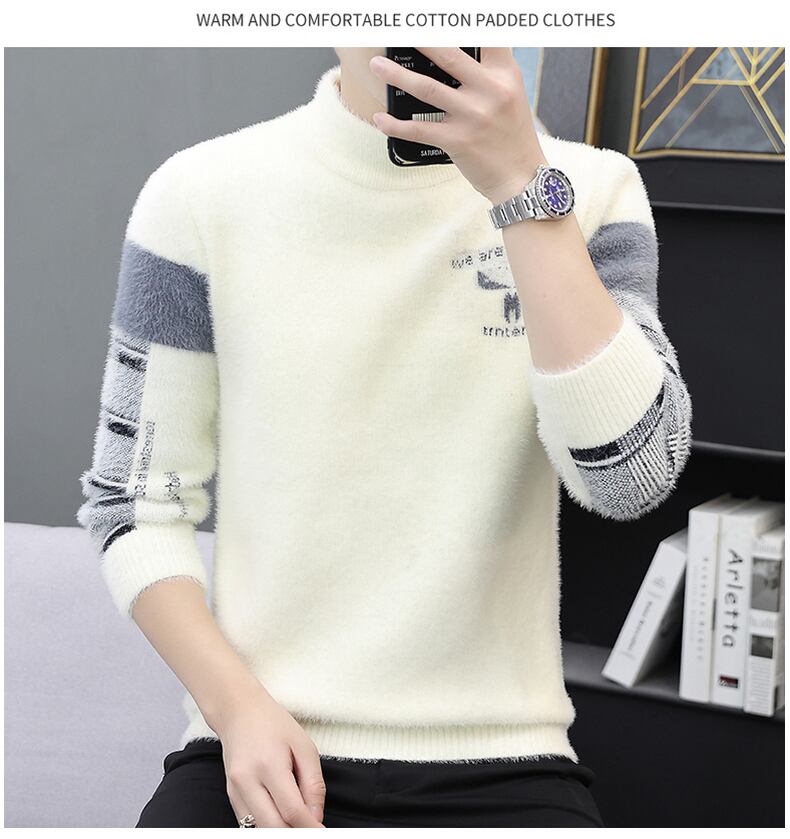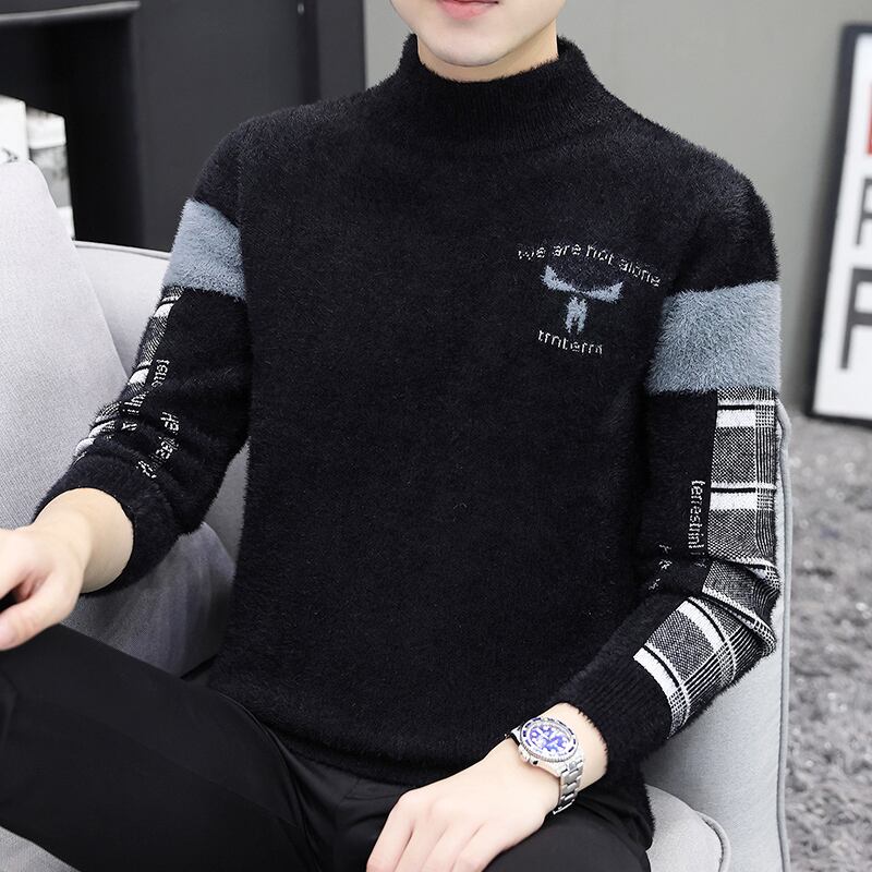 Half turtleneck mink fleece sweater men's autumn and winter plus velvet thickening bottoming sweater warm top trend line オータム 秋物 ウィンター 冬物 doushi6789636075