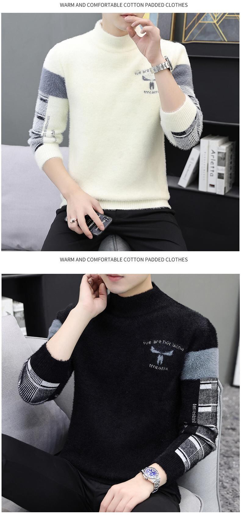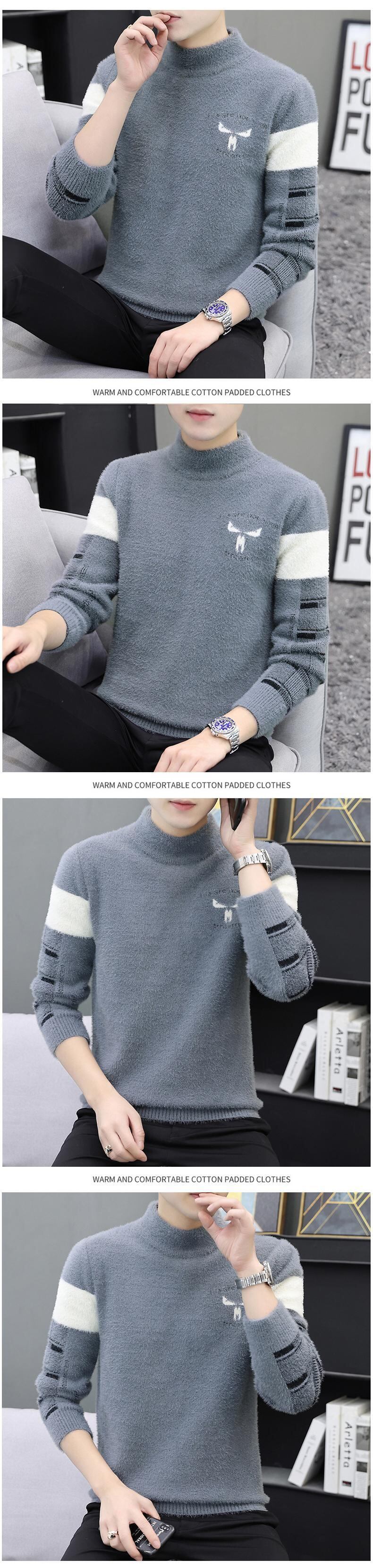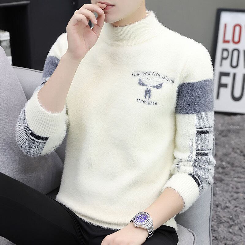 Half turtleneck mink fleece sweater men's autumn and winter plus velvet thickening bottoming sweater warm top trend line オータム 秋物 ウィンター 冬物 doushi6789636075