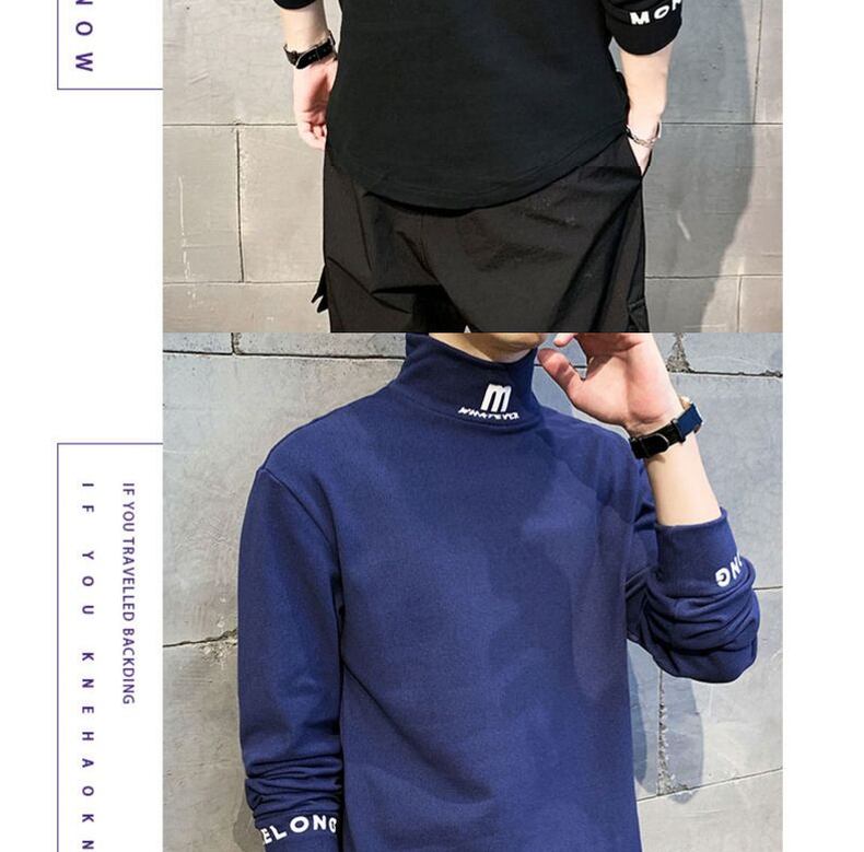 Autumn and winter plus velvet thick warm long-sleeved T-shirt men's trend autumn clothes youth half turtleneck sweater men ロング オータム 秋物 ウィンター 冬物 Tシャツ doushi45072260282