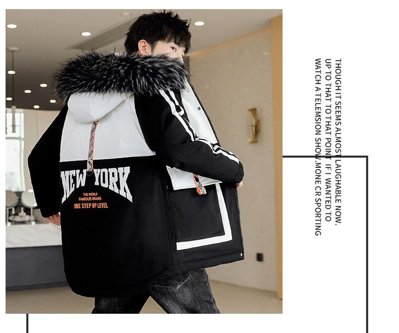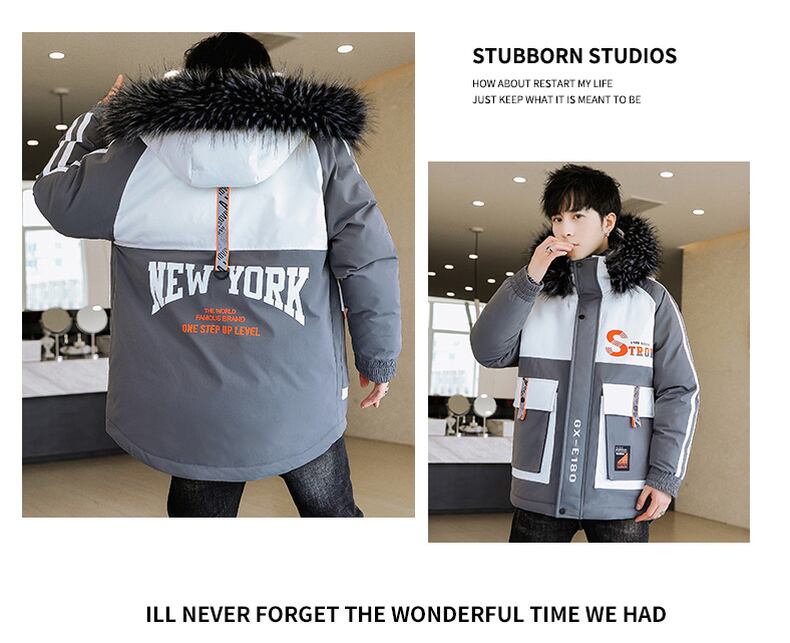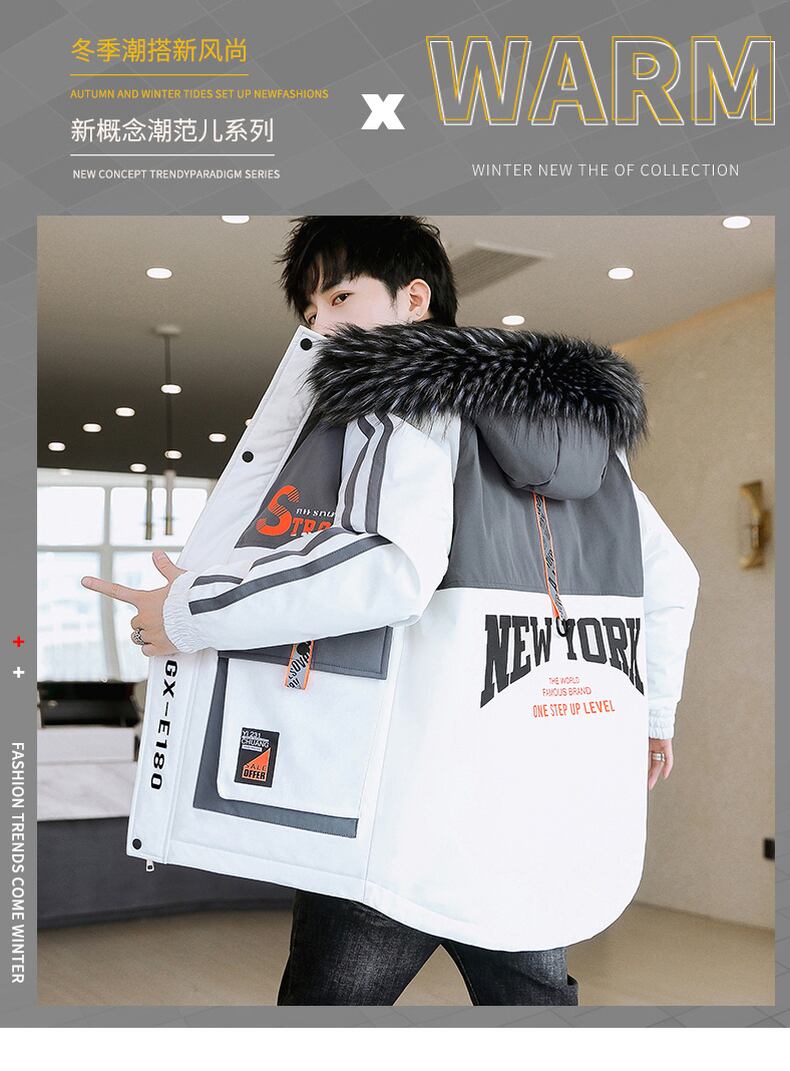 Big fur collar hooded cotton-padded jacket men's plus size plus size version loose trend fat mid-length coat winter コットン 大きめサイズ ウィンター 冬物 doushi40816922957