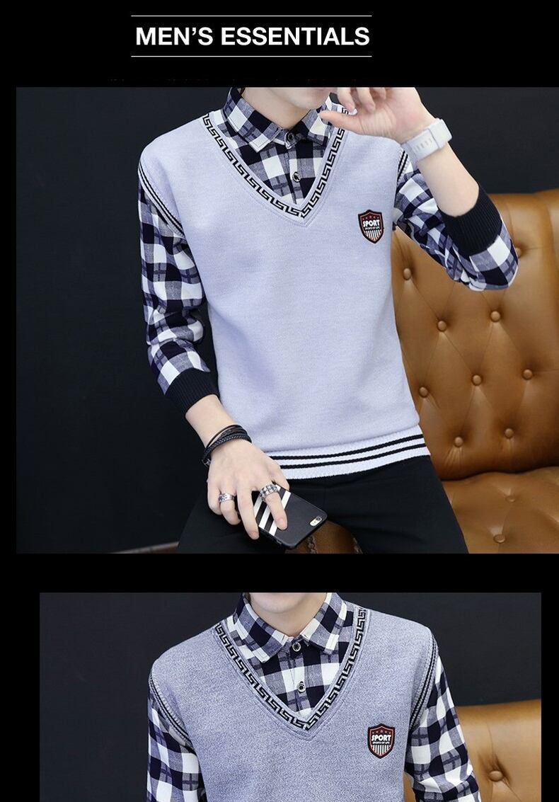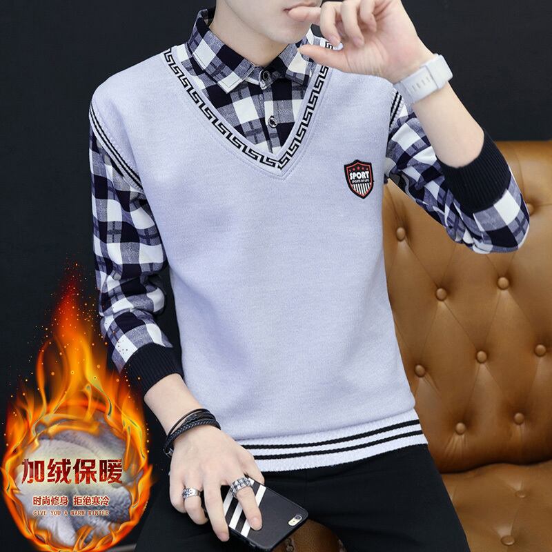 Autumn long-sleeved shirt sweater men's fake two-piece shirt t-shirt thin bottoming shirt teen coat top clothes ロング オータム 秋物 Tシャツ doushi88312408853