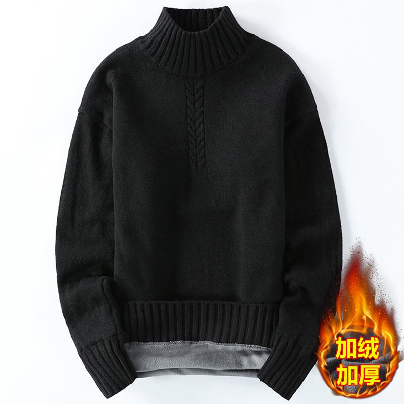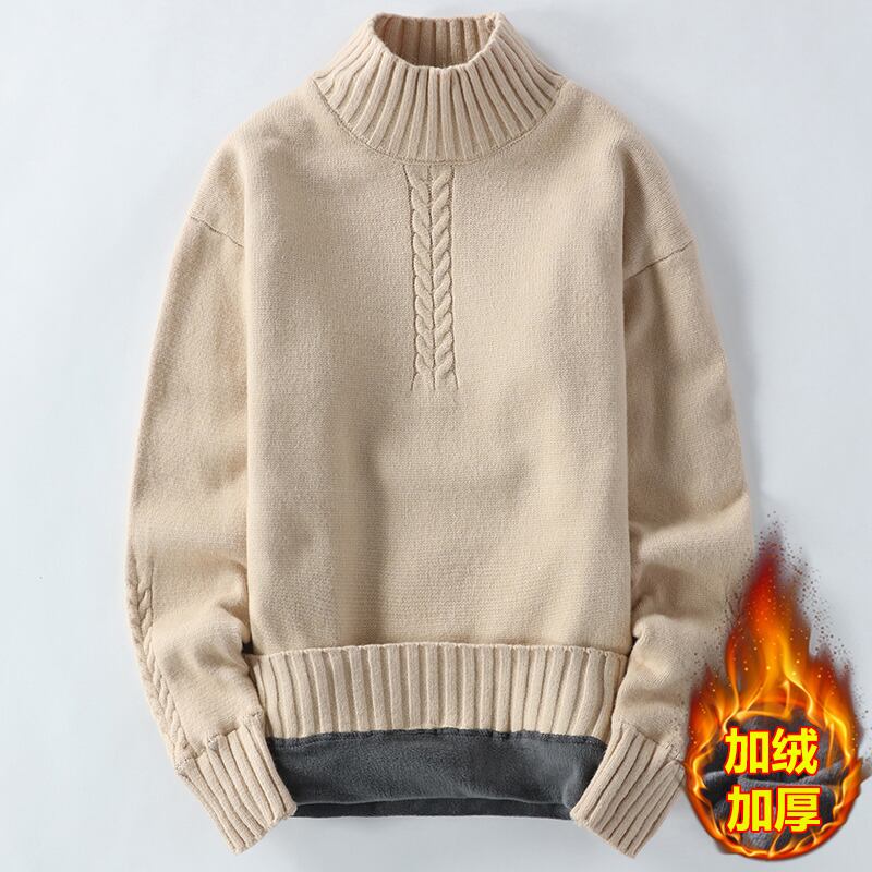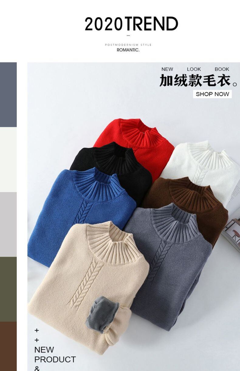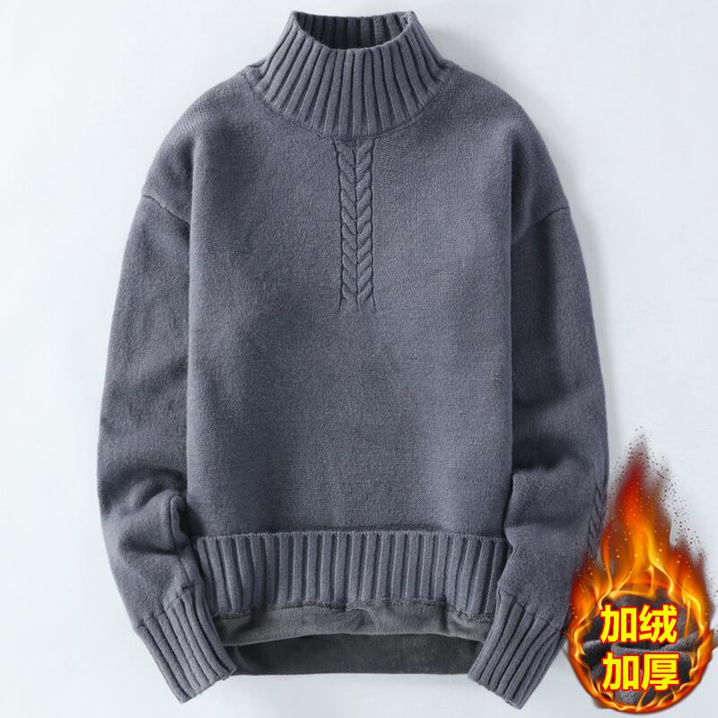 Autumn and winter solid color half turtleneck sweater men's loose casual bottoming shirt version trend ins plus velvet thick knitted sweater カジュアル オータム 秋物 ウィンター 冬物 ソリッドカラー doushi26457609854