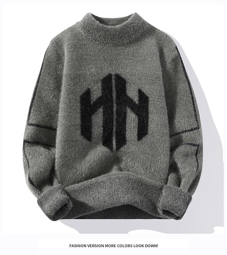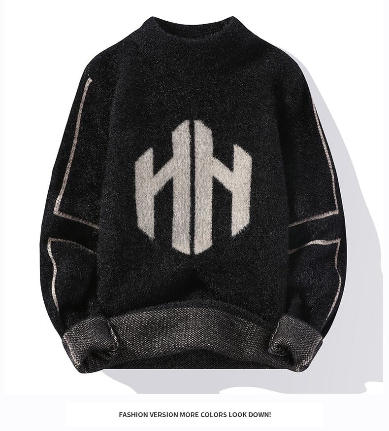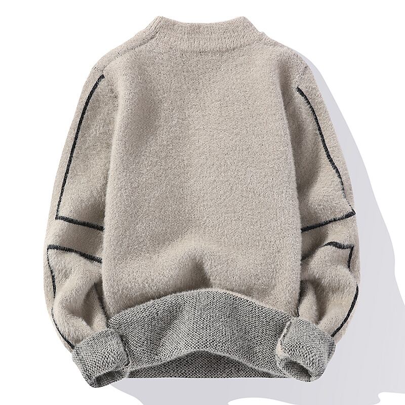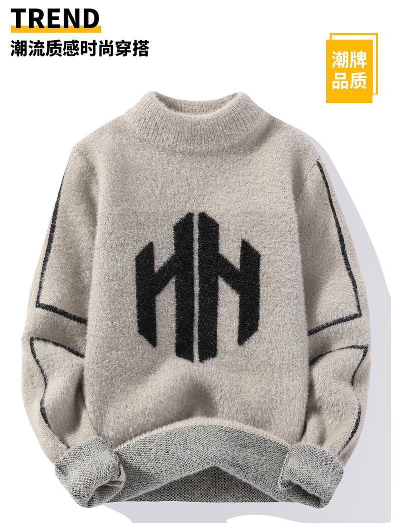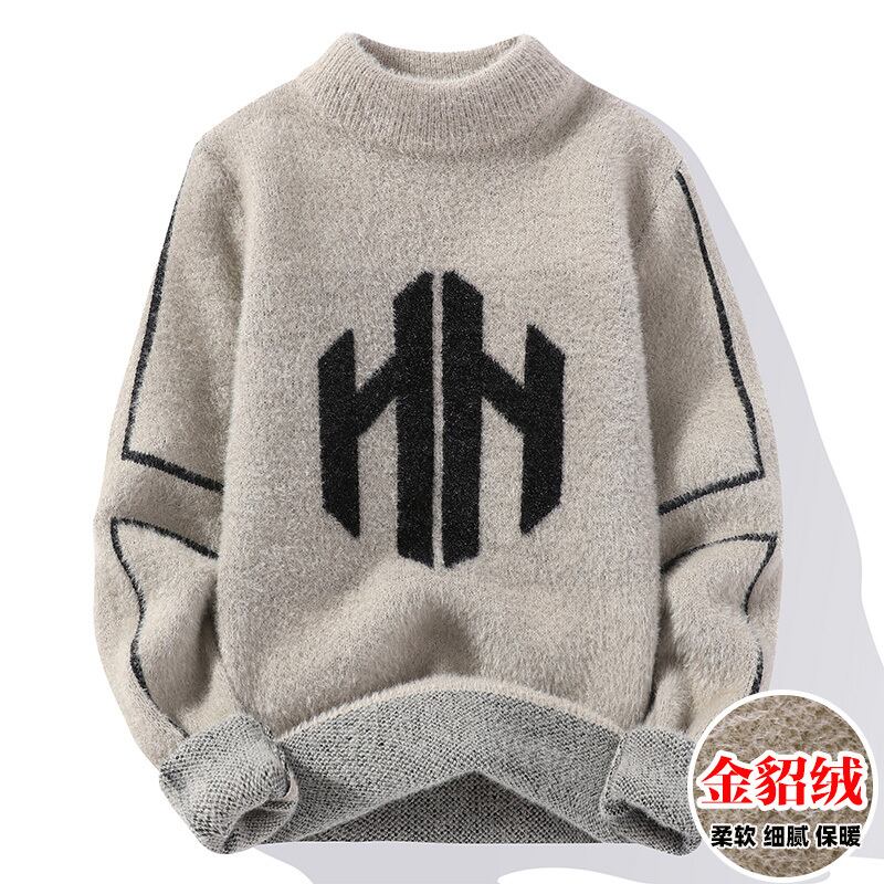 Mink fleece sweater men's half turtleneck long-sleeved knitted bottoming shirt plus velvet thickening student trend autumn clothes ロング オータム 秋物 doushi80100434557