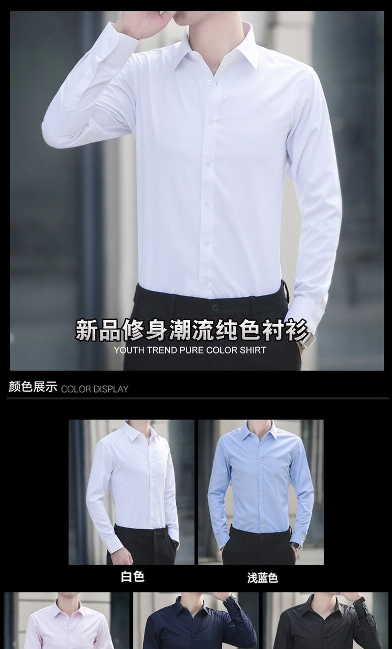 Shirt men's long-sleeved version self-cultivation non-iron business professional suit shirt men's youth autumn dress shirt trend ロング オータム 秋物 doushi69209124830