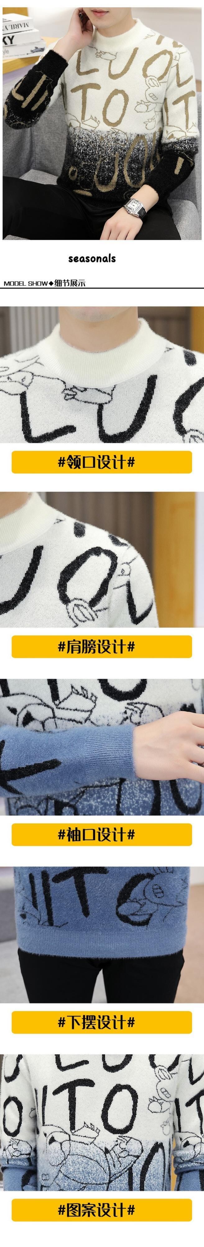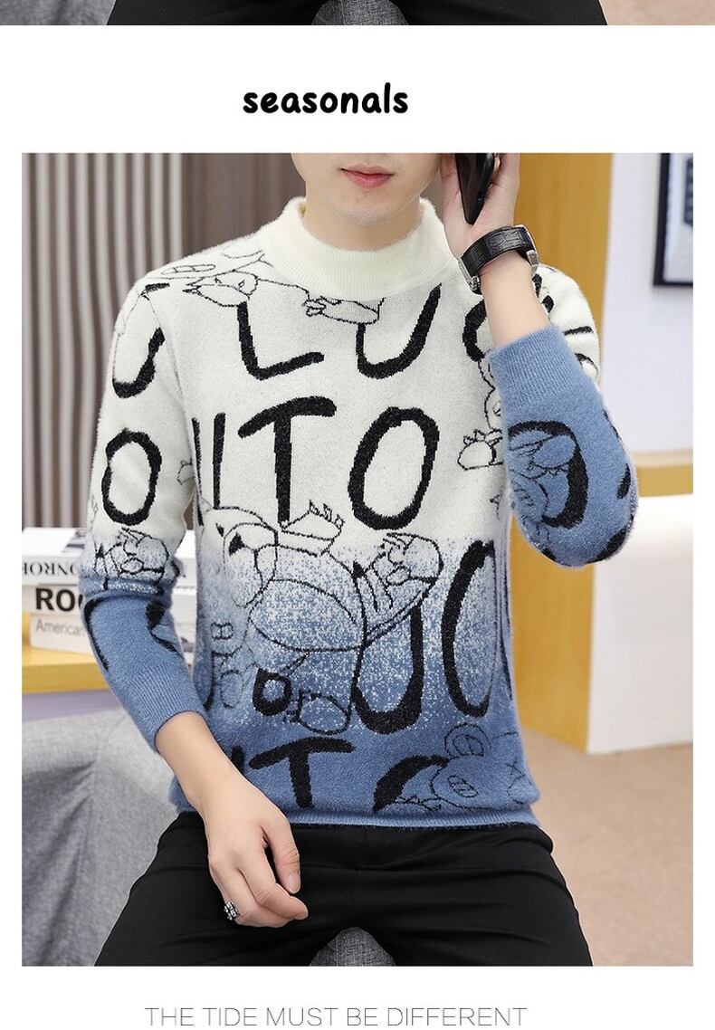 Mink fleece sweater men's autumn and winter half turtleneck long-sleeved knitted bottoming shirt plus velvet thickening trend autumn clothes ロング オータム 秋物 ウィンター 冬物 doushi86854475274