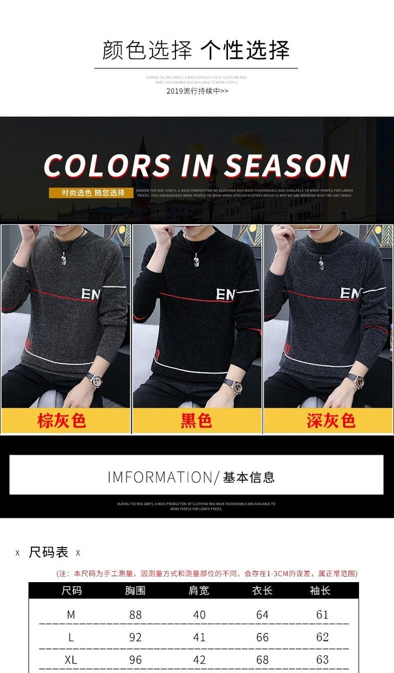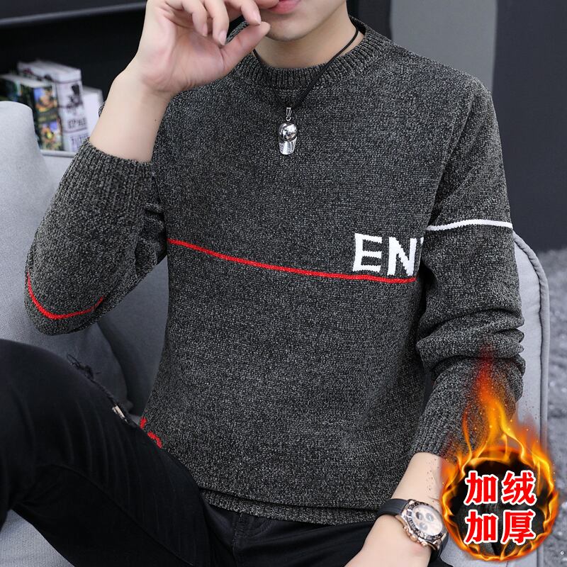 Spring and Autumn Men's Sweater Round Neck Loose Trend Tide Sweater Autumn and Winter Version Pullover Plus Velvet Thick Knit Sweater スプリング 春物 オータム 秋物 ウィンター 冬物 Oネック doushi55321098845