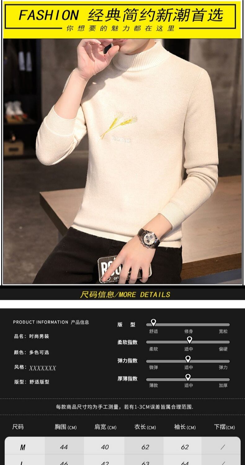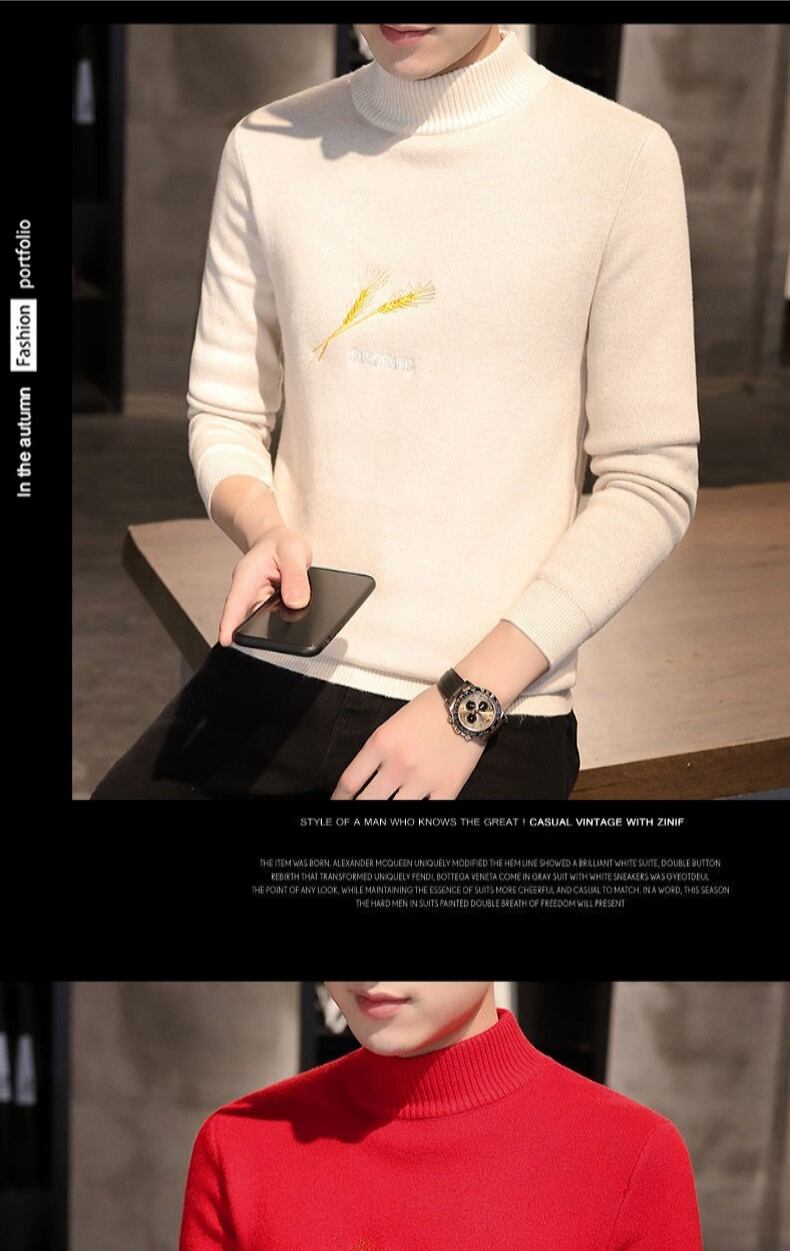 All-in-one velvet mid-neck half turtleneck sweater men's plus velvet thickened autumn and winter bottoming shirt trend cashmere オータム 秋物 ウィンター 冬物 doushi22691357267