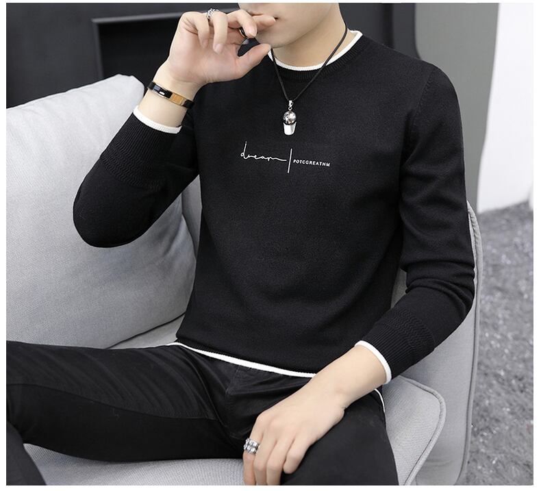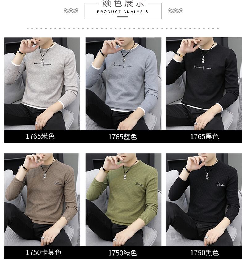 Autumn and winter men's sweater line clothes trend knitted sweater men's winter middle growth sleeves plus velvet thick bottoming shirt オータム 秋物 ウィンター 冬物 doushi44057422553