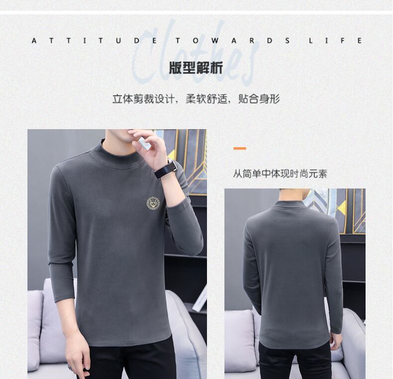 Half turtleneck bottoming shirt men's tide brand ins spring and autumn German velvet long-sleeved t-shirt men's winter warm inner clothes ロング スプリング 春物 オータム 秋物 ウィンター 冬物 Tシャツ doushi23698918075