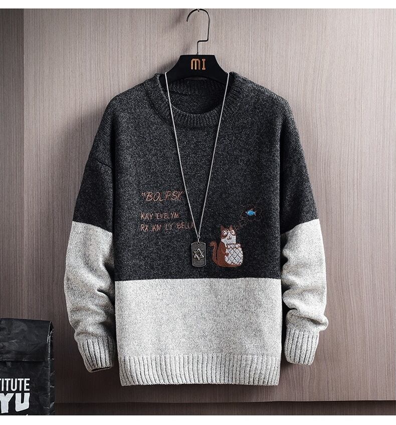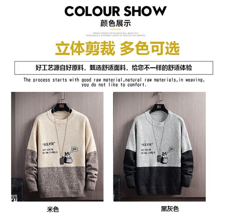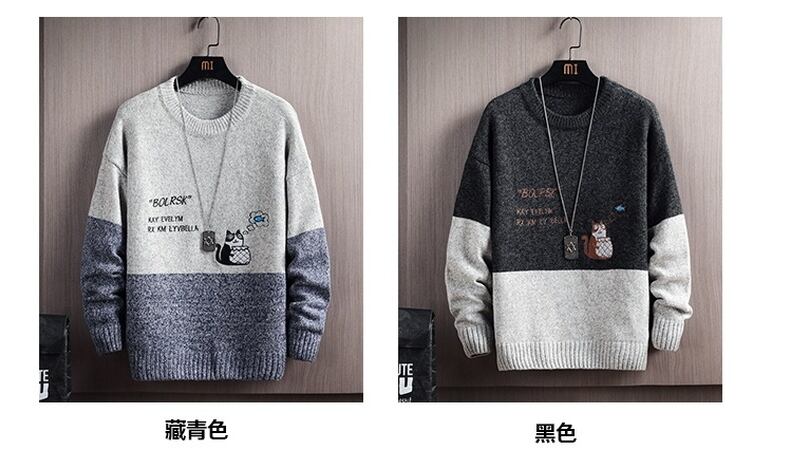 Autumn and winter new version men's sweater round neck plus velvet thick tide brand youth knitted sweater top clothes bottoming shirt オータム 秋物 ウィンター 冬物 Oネック doushi10767519920