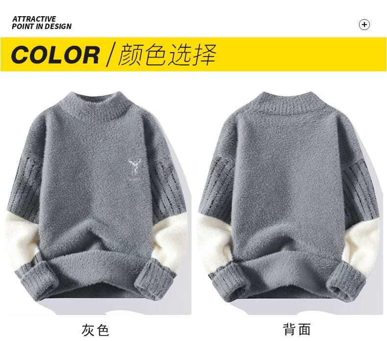Mink velvet sweater men's autumn and winter plus velvet warm bottoming shirt trend junior high students handsome big boy sweater オータム 秋物 ウィンター 冬物 doushi36129564593