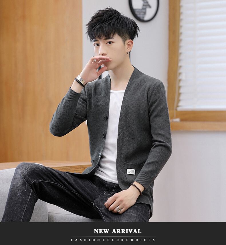 Men's cardigan jacket thin section 2022 new spring and autumn short windbreaker version slim knitted sweater no button cape ショート カーディガン スプリング 春物 オータム 秋物 スリム doushi65224192444