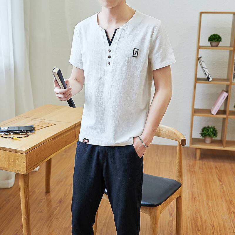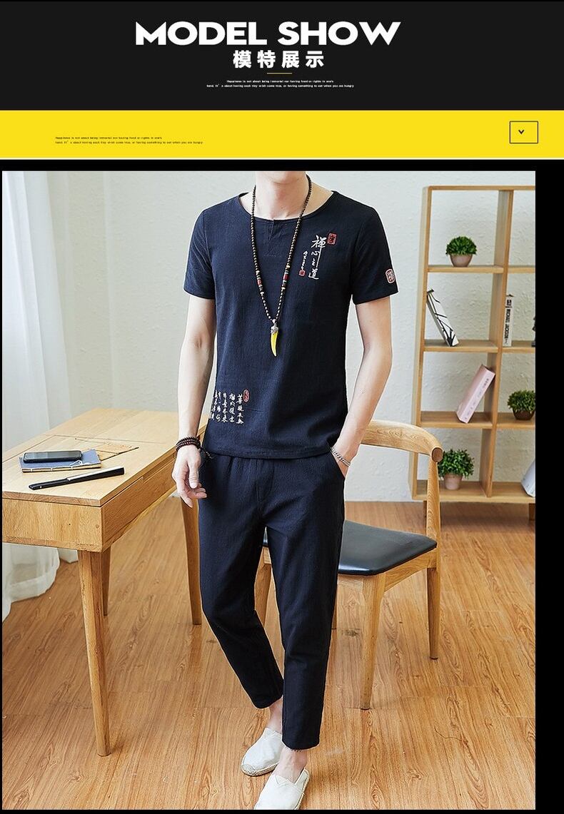 Chinese style linen suit men's spring men's Hanfu retro fashion brand embroidered youth cotton and linen half-sleeve Tang suit レッド コットン レトロ 刺繍 スプリング 春物 doushi72863602764