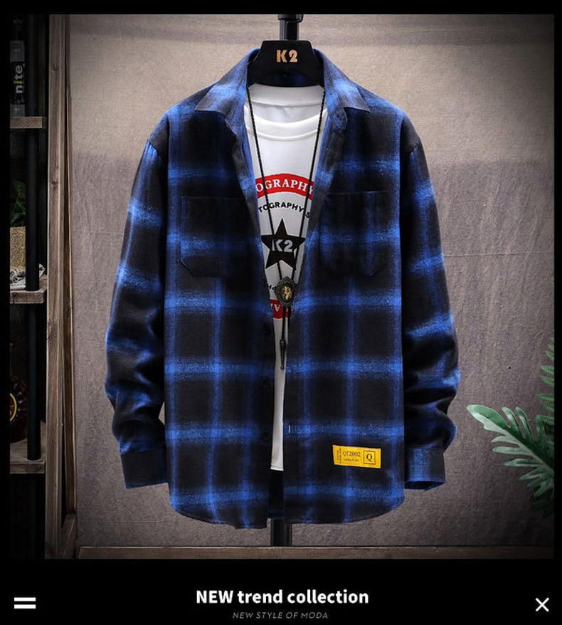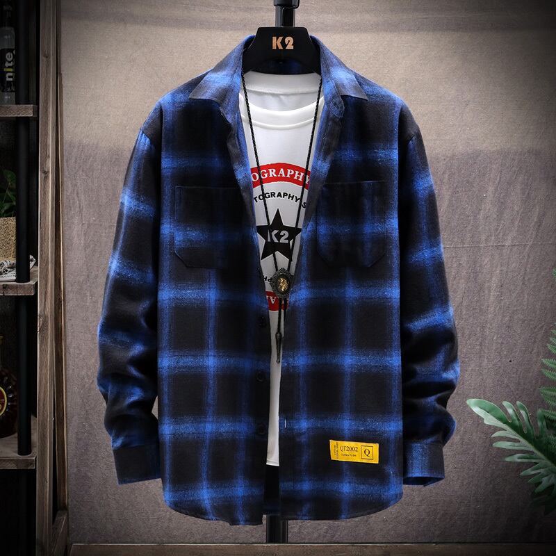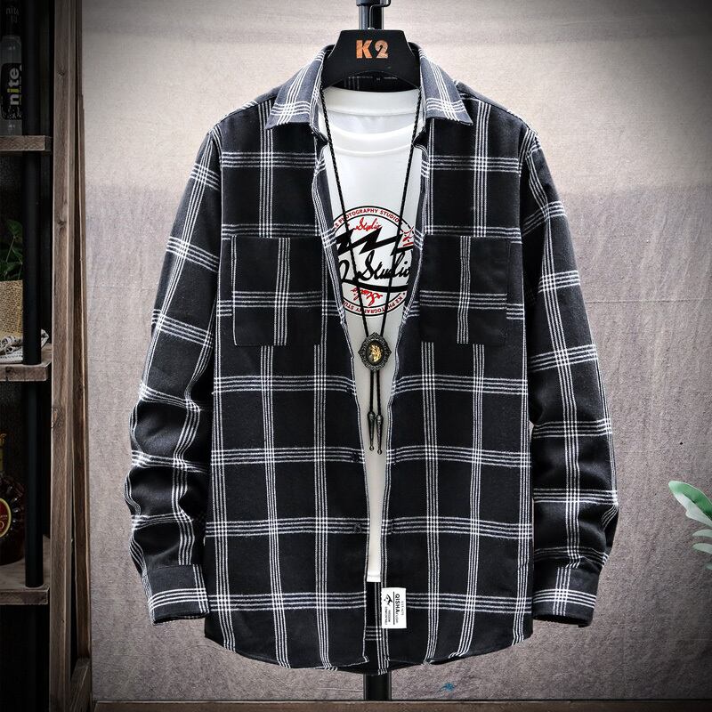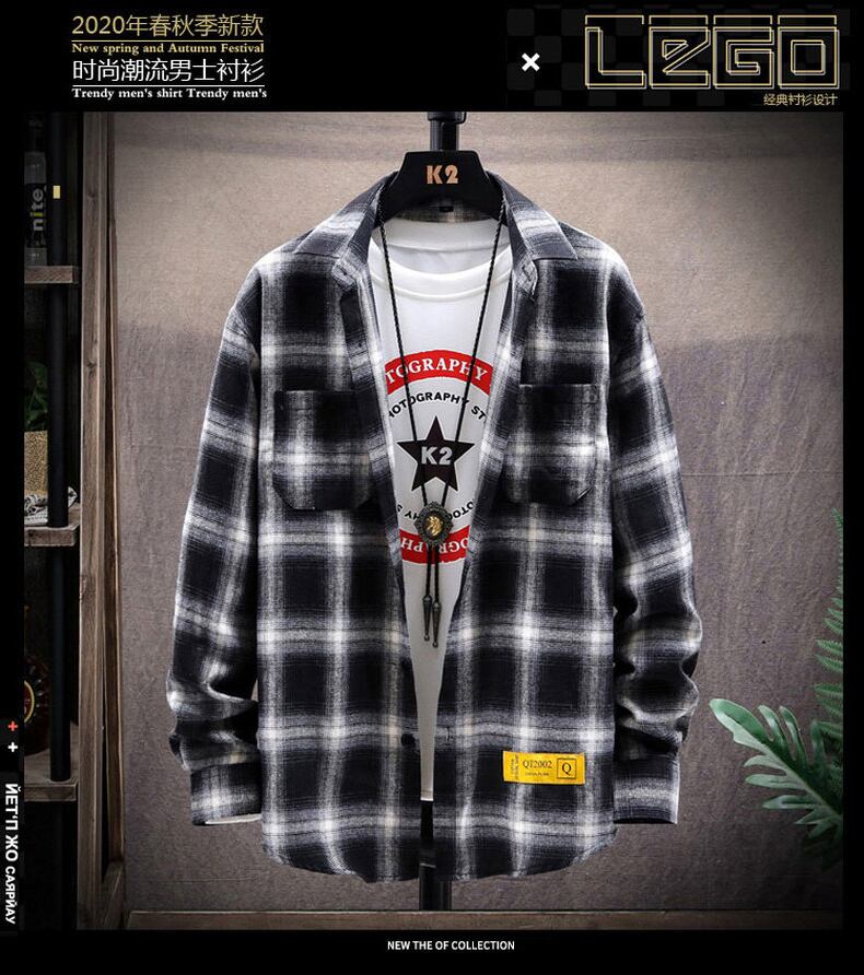 Men's shirts long-sleeved summer version trend thin loose plaid shirt tide brand handsome spring and autumn casual jacket ロング カジュアル シャツ スプリング 春物 サマー 夏物 オータム 秋物 doushi18891956690