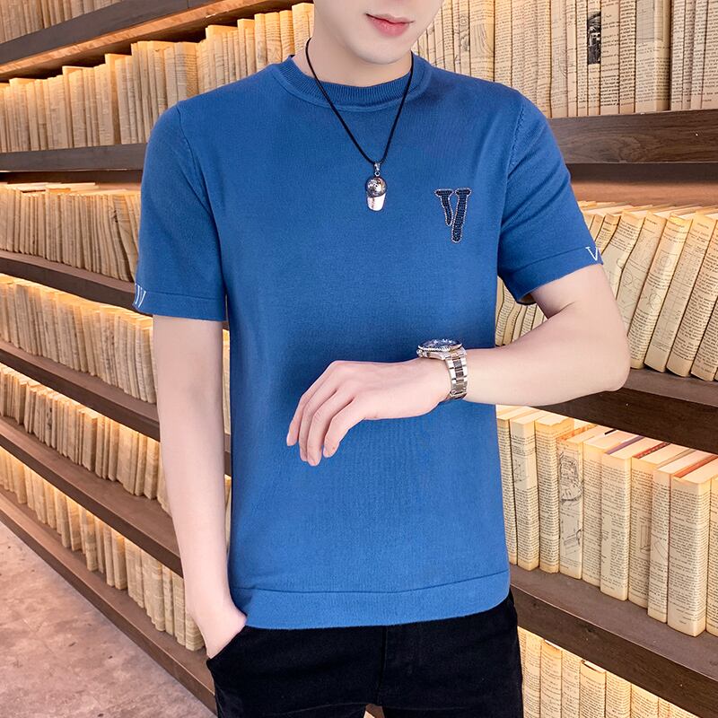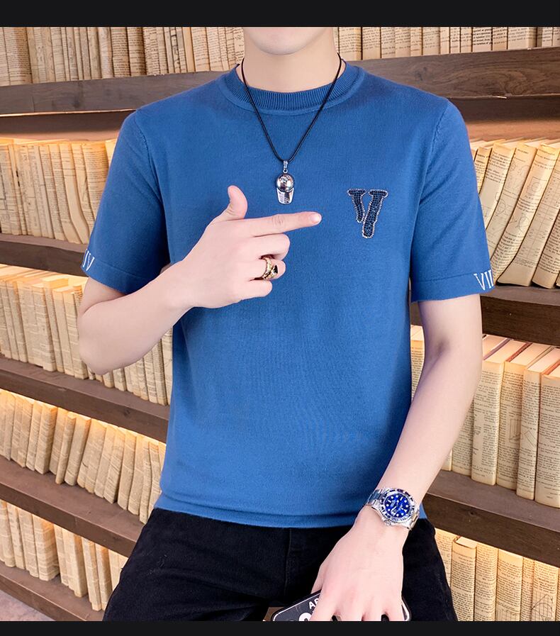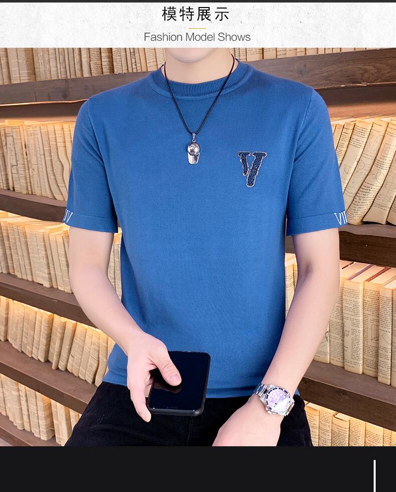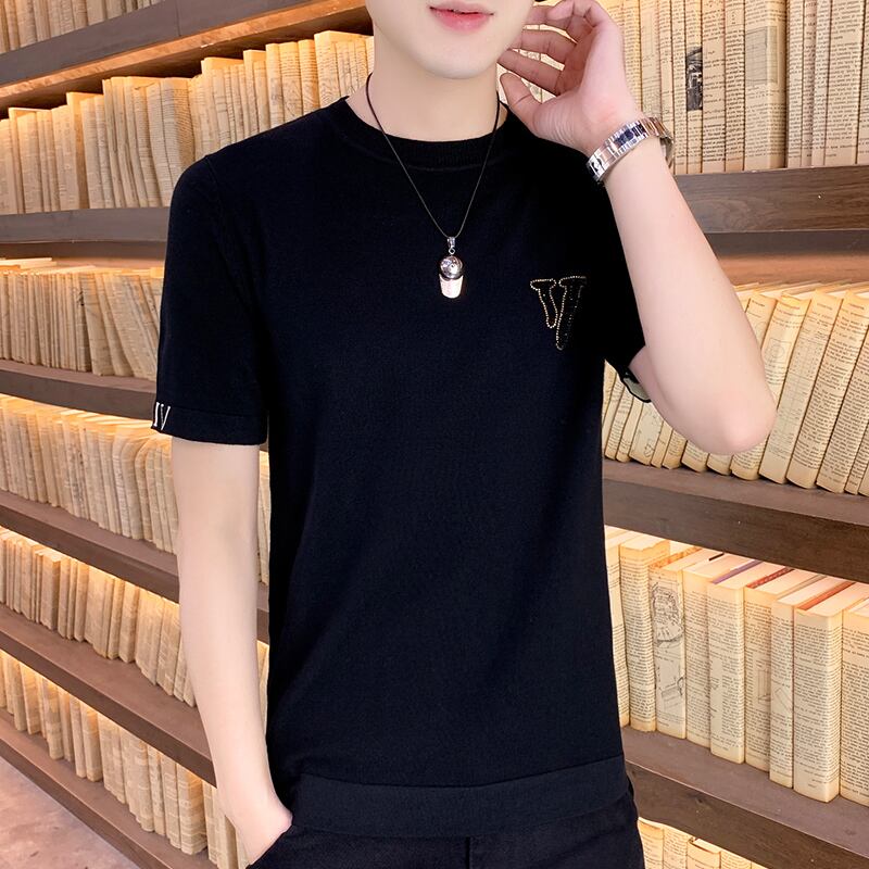 2022 new spring and autumn short-sleeved t-shirt men's drill bottoming shirt slim trend personality wild round neck half sleeve 半袖 ハーフスリーブ スプリング 春物 オータム 秋物 Oネック スリム Tシャツ doushi53645830586