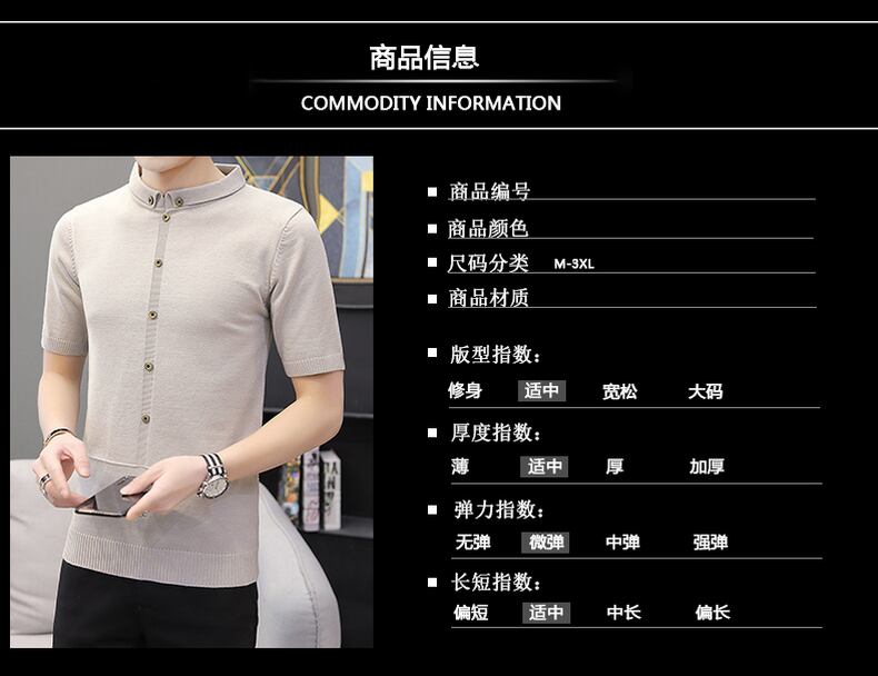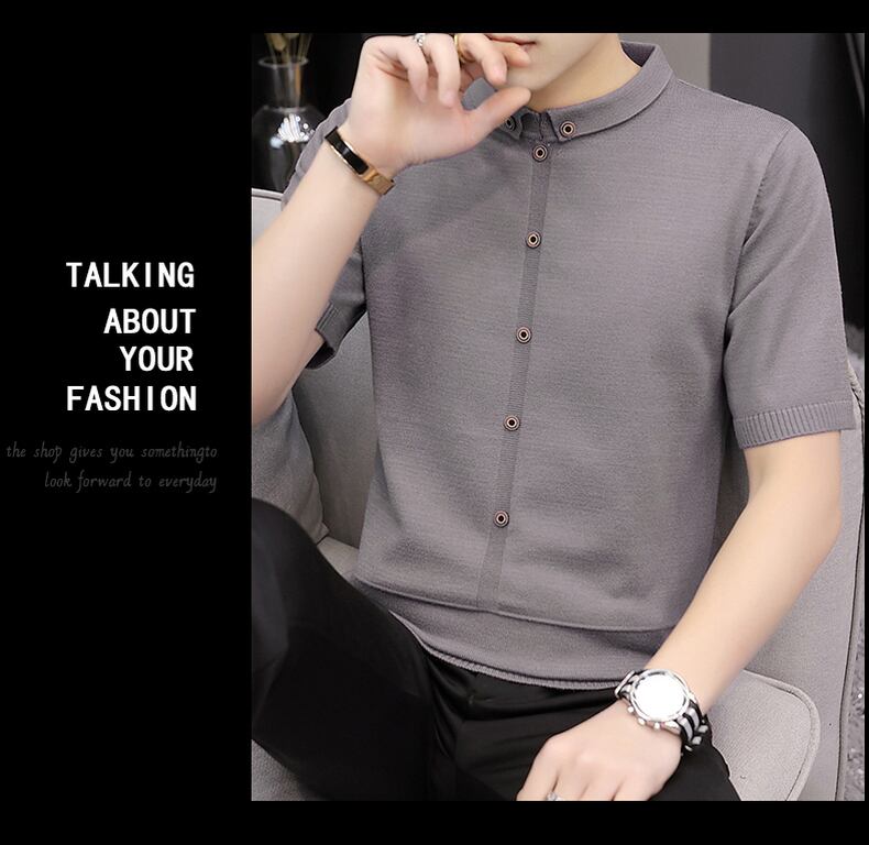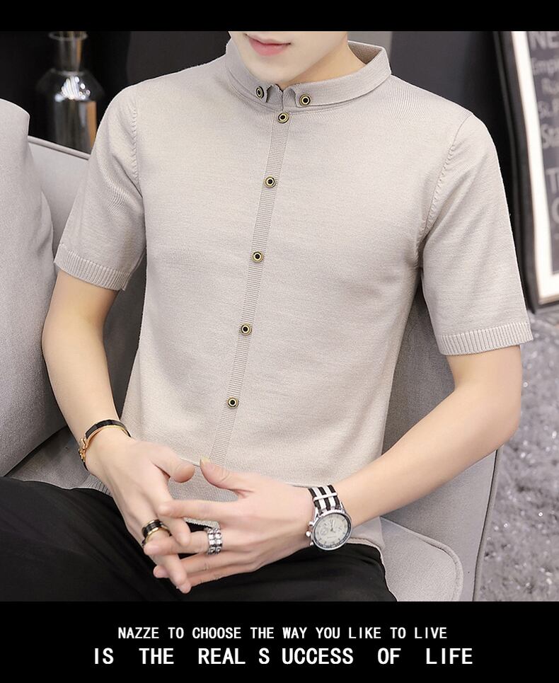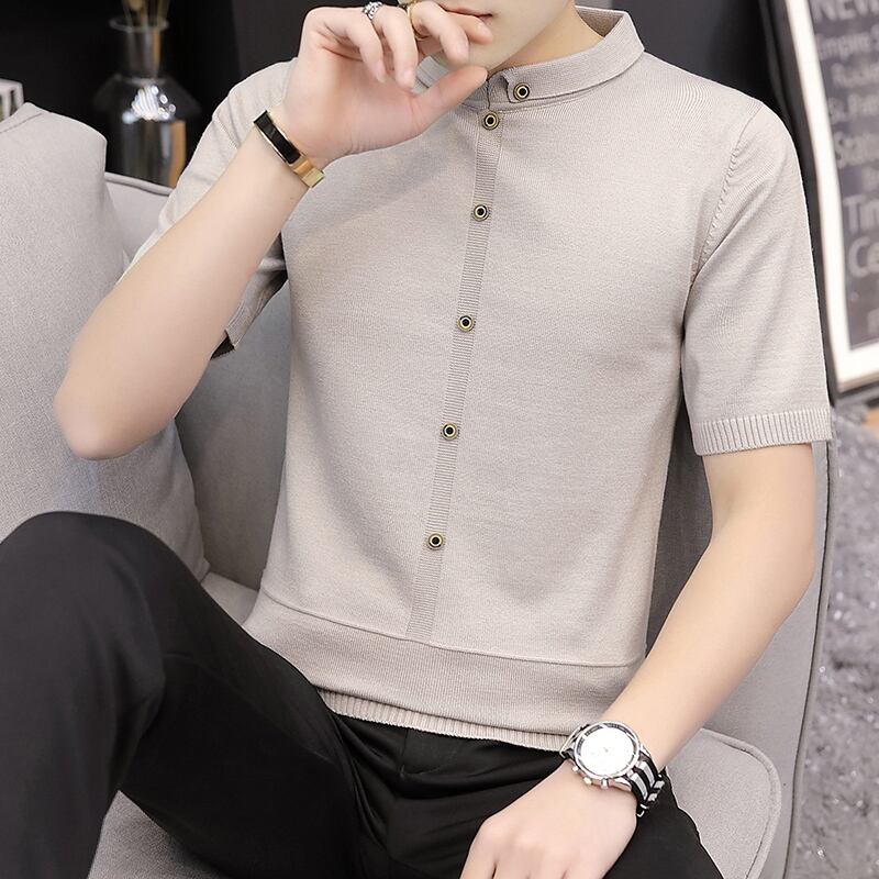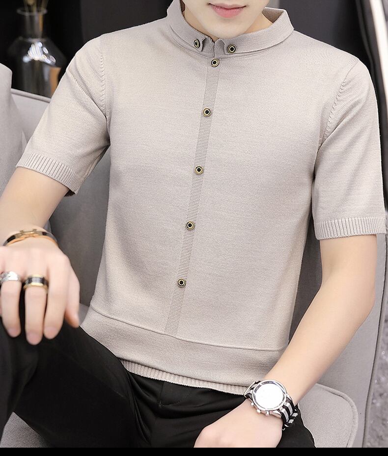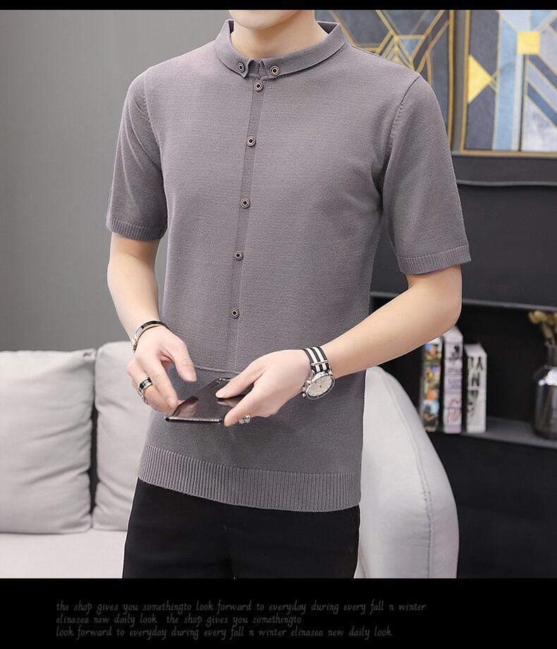 Short-sleeved T-shirt men's spring solid color knitted sweater version youth bottoming shirt handsome sweater trendy men's clothing スプリング 春物 Tシャツ ソリッドカラー doushi41370088573