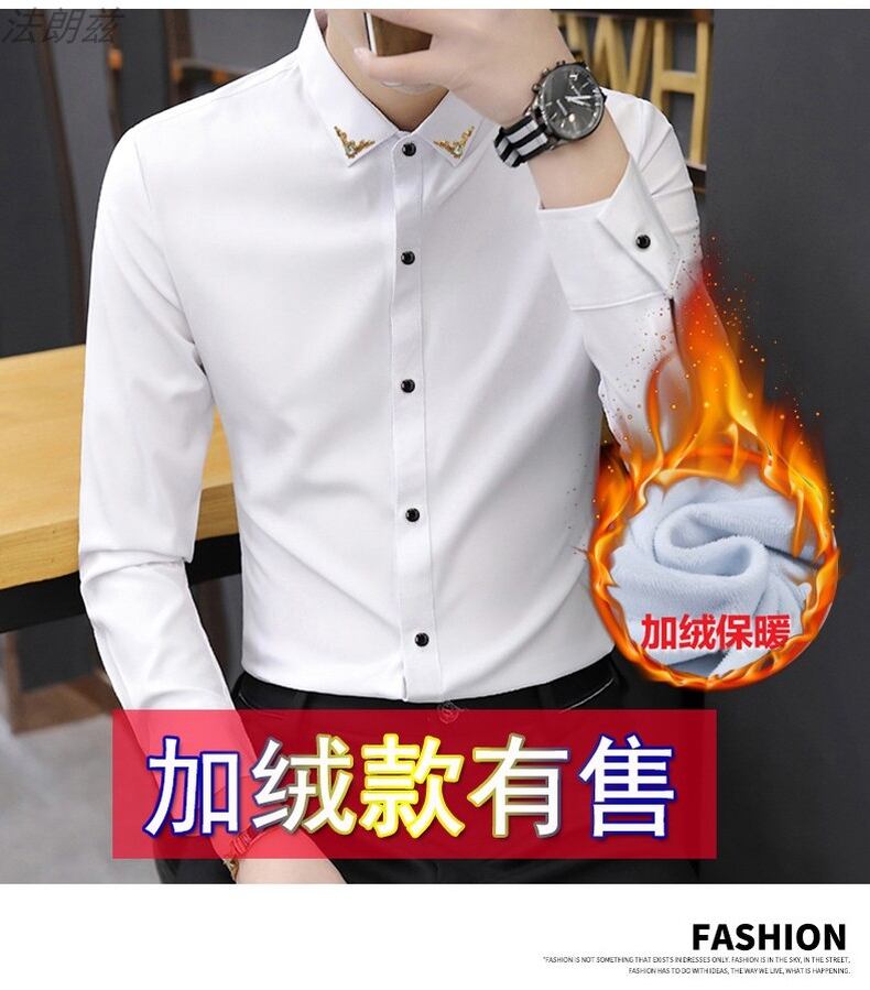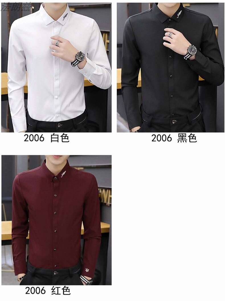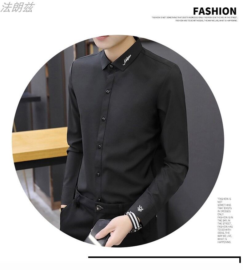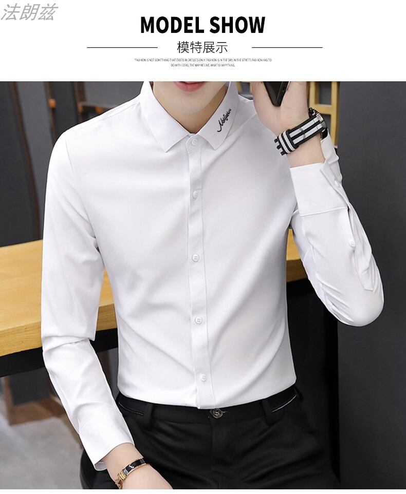White shirt men's long-sleeved slim version trend 2022 spring and autumn men's shirts casual professional workwear black inch shirt ロング ホワイト ブラック カジュアル シャツ スプリング 春物 オータム 秋物 スリム doushi55271926745