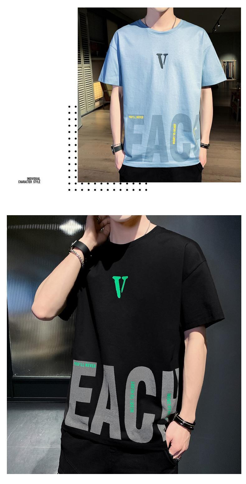 Men's short-sleeved 2022 summer new loose fashion all-match T-shirt version ins tide brand printing half-sleeve men's top サマー 夏物 Tシャツ doushi30223812119
