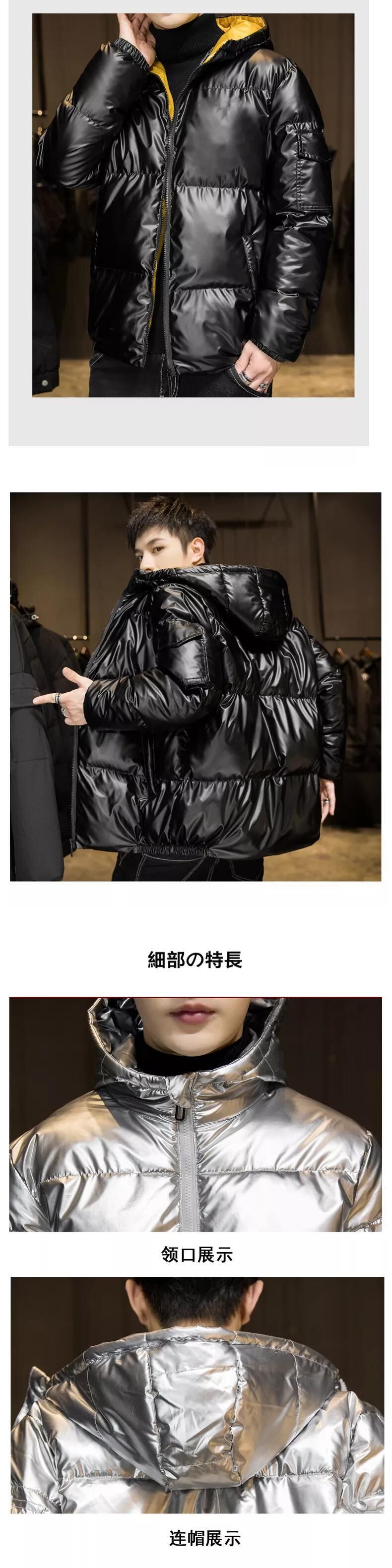 Padded jacket men's winter thickened jacket tide brand tooling bright reflective short down padded jacket warm bread jacket padded jacket ショート ウィンター 冬物 doushi75597685053