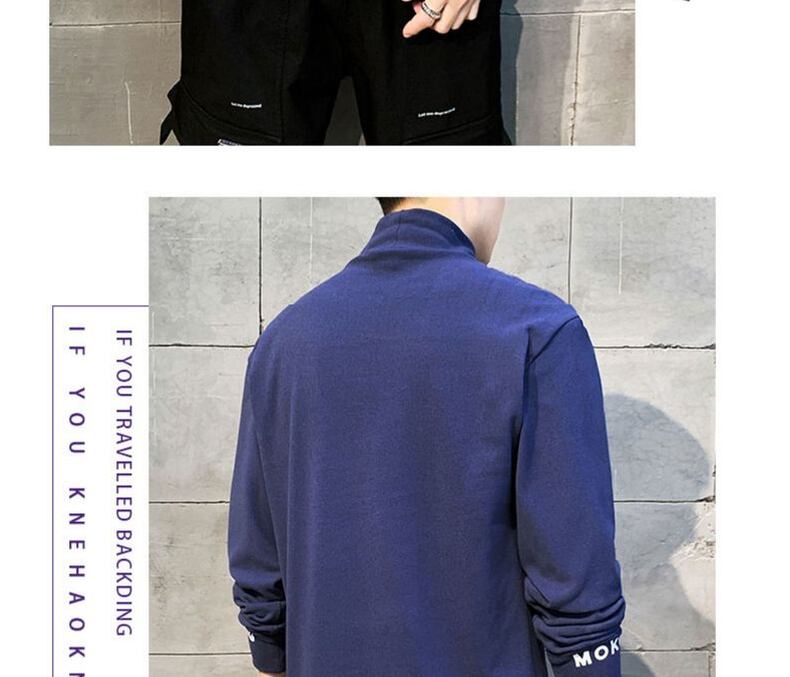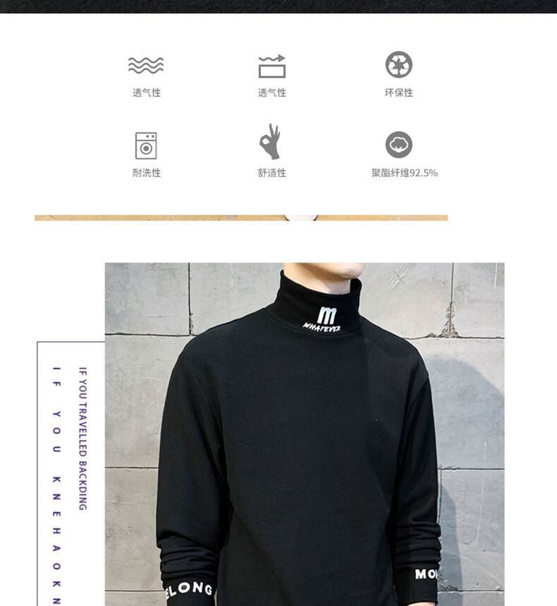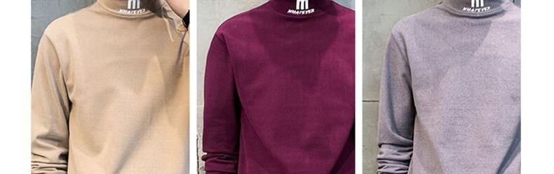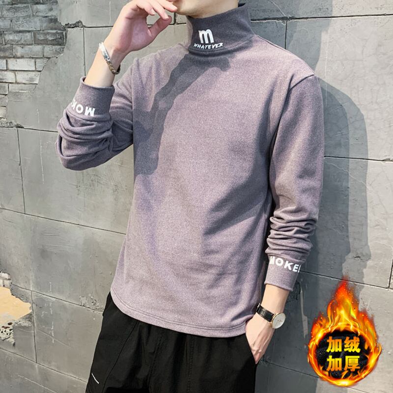 Half turtleneck long-sleeved t-shirt men's autumn and winter trend autumn clothes youth velvet thick warm sweater ロング オータム 秋物 ウィンター 冬物 Tシャツ doushi29549863114