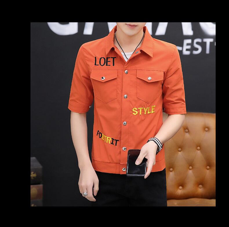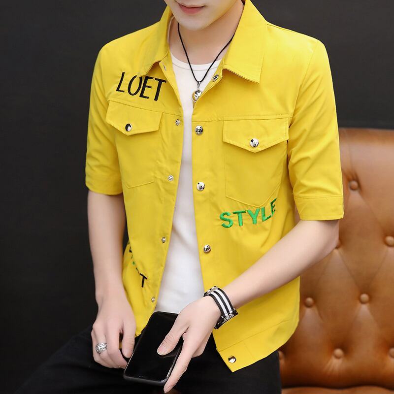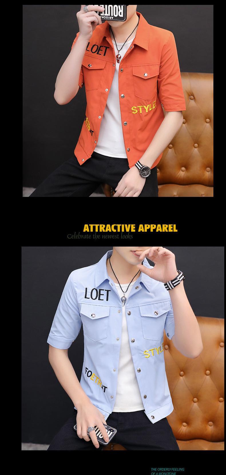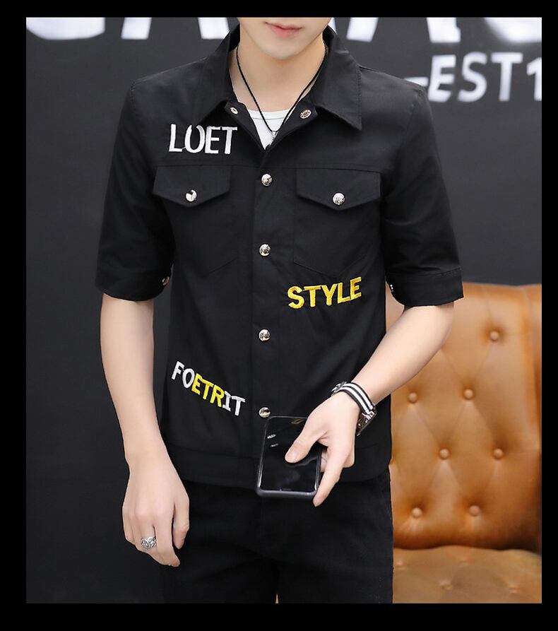 Short-sleeved shirt men's 2022 summer new trend lapel mid-sleeve top clothes version all-match five-point sleeve inch shirt サマー 夏物 doushi44612510614