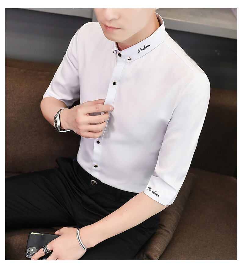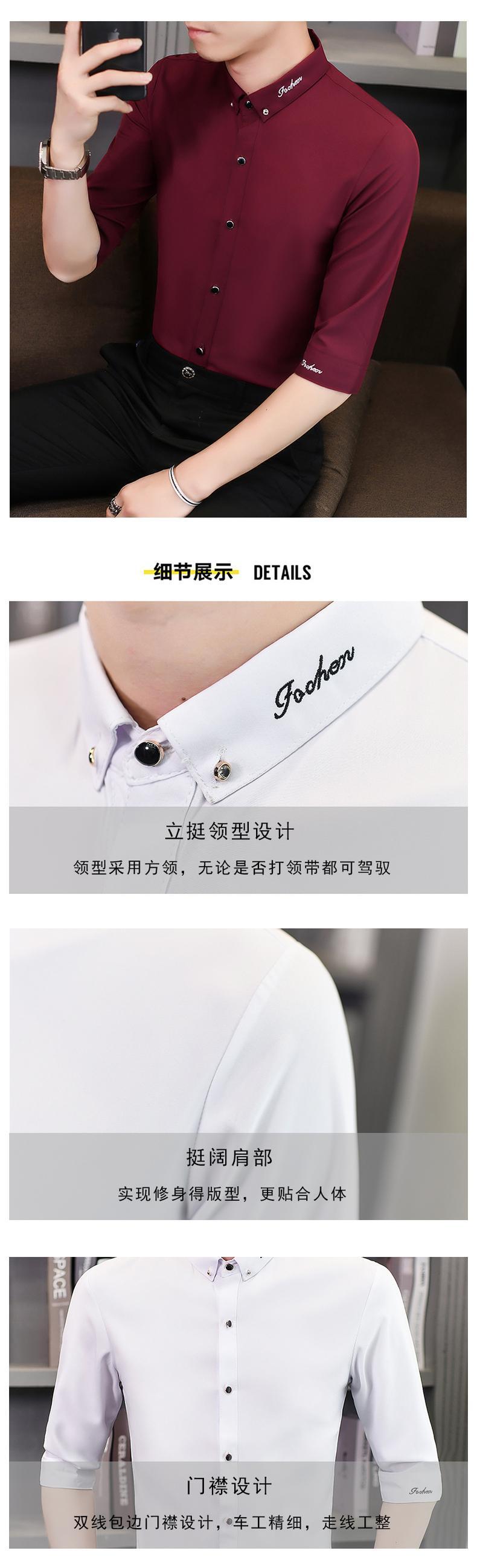 Summer thin mid-sleeve shirt men's slim style elastic three-quarter sleeve shirt men's black casual ice silk inch shirt ブラック カジュアル エラスティック 伸縮 サマー 夏物 スリム シルク doushi98812258288