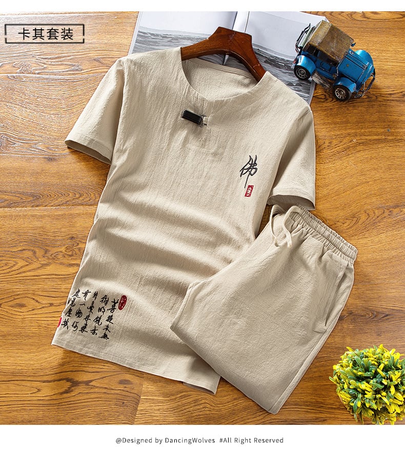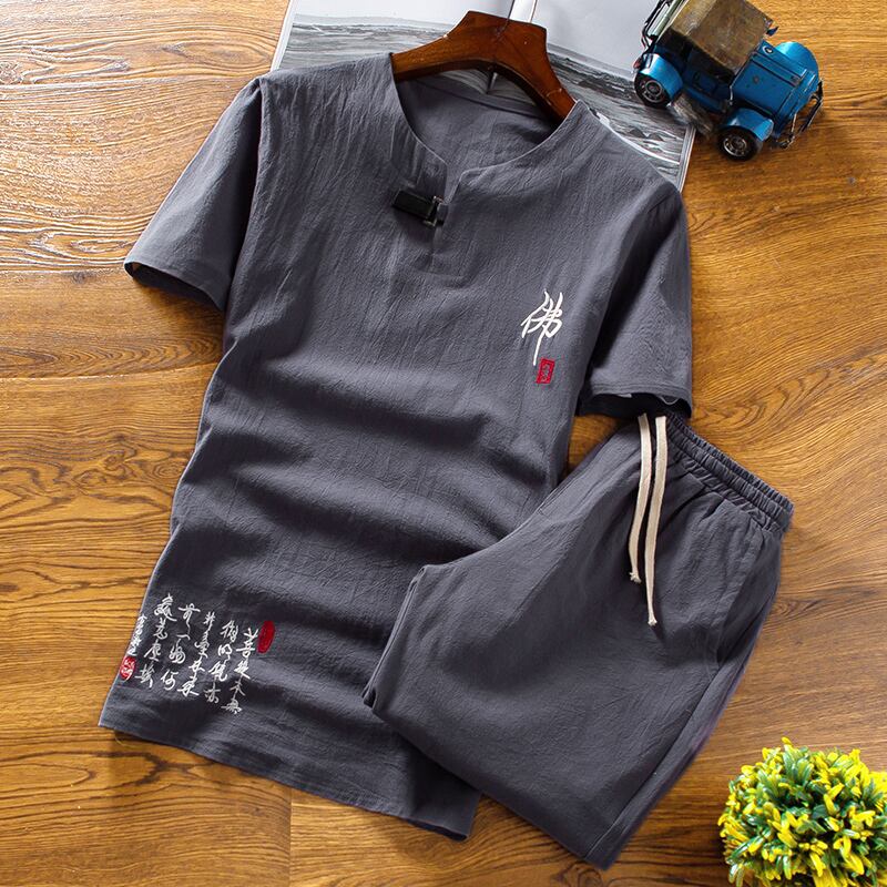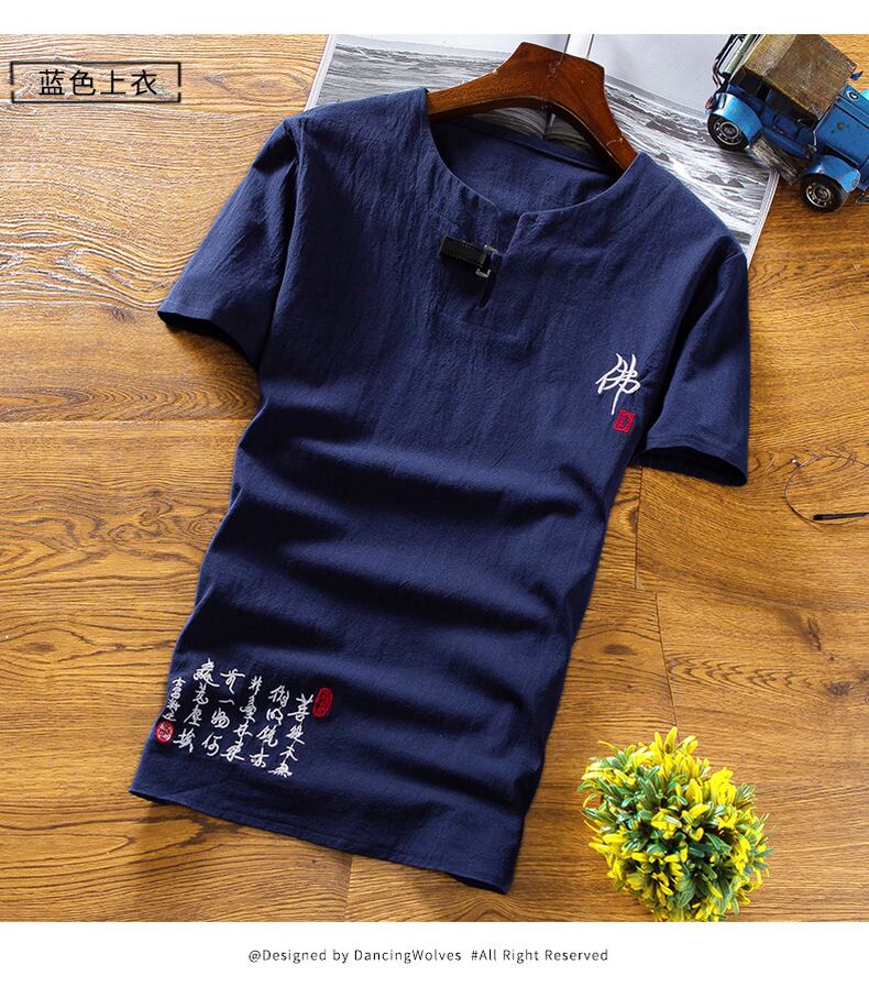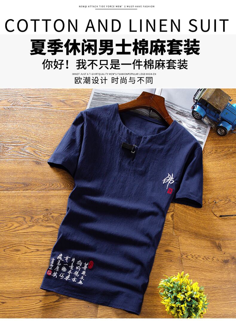2021 new Chinese style men's summer linen suit men's cotton and linen short-sleeved t-shirt v Tang suit clothes thin retro コットン レトロ サマー 夏物 Tシャツ doushi75071759034