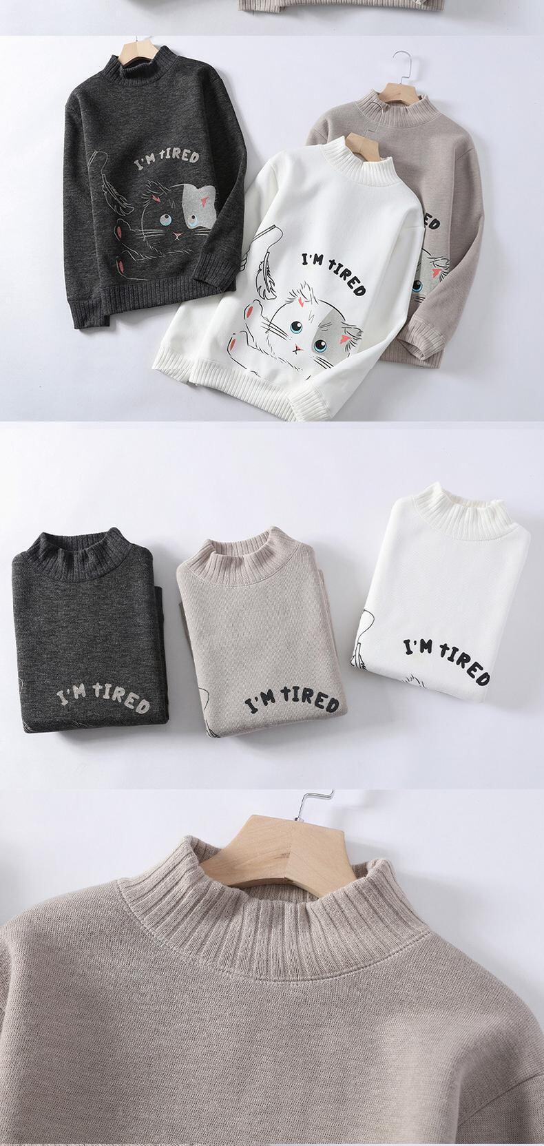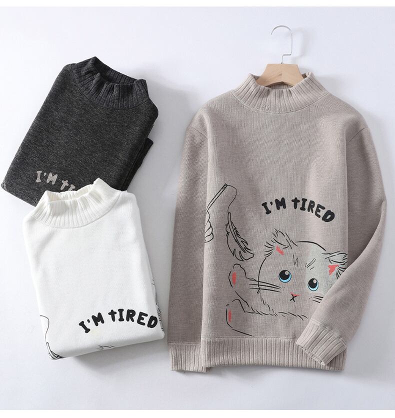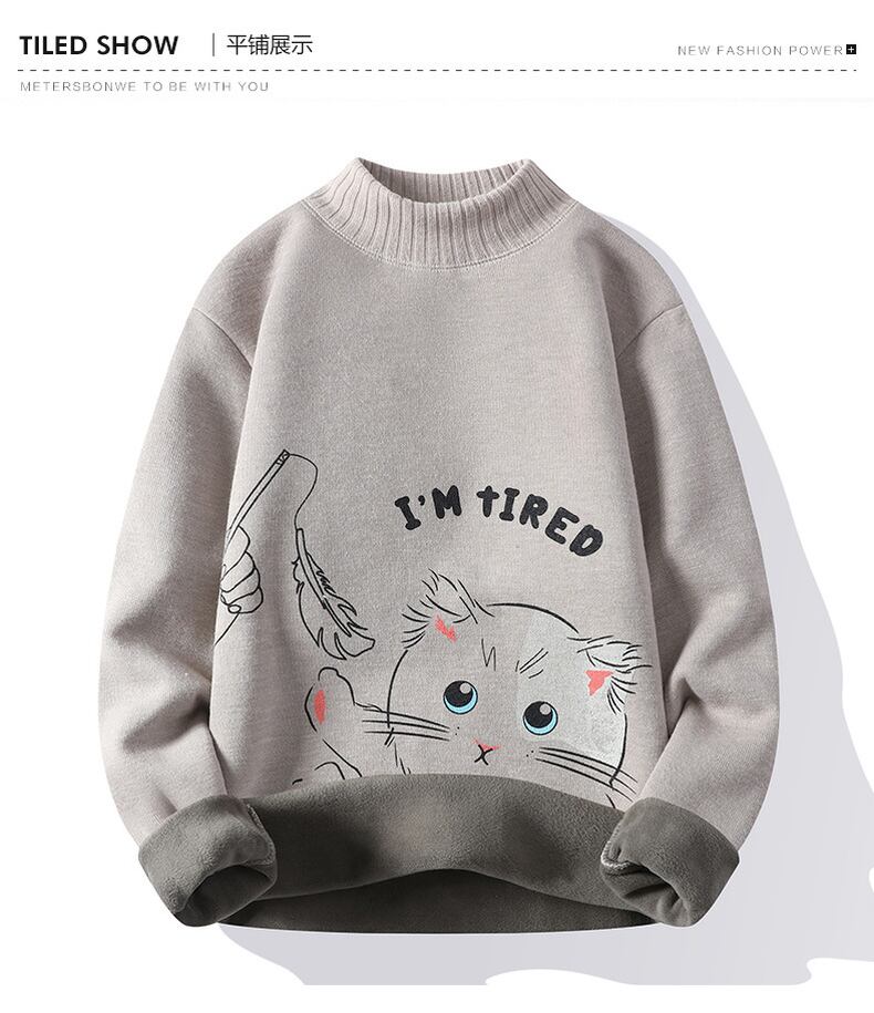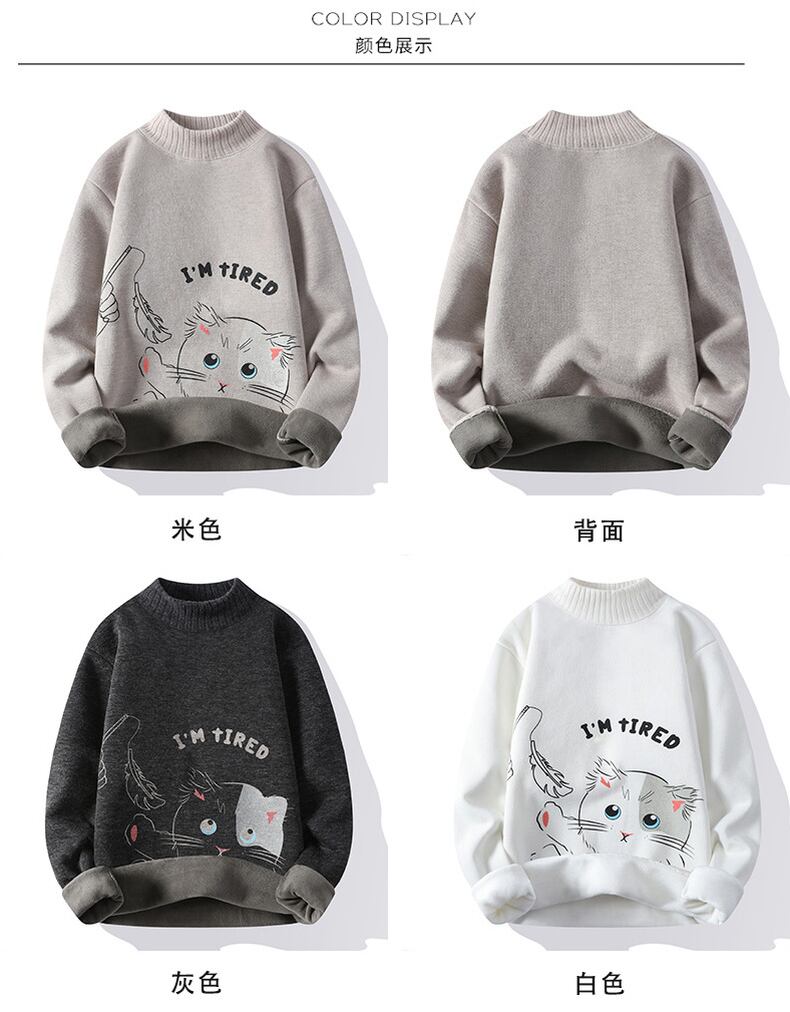 Autumn and winter fleece thickened half turtleneck sweater men's cartoon cat print knitted sweater with bottoming shirt in the collar オータム 秋物 ウィンター 冬物 doushi44802027974