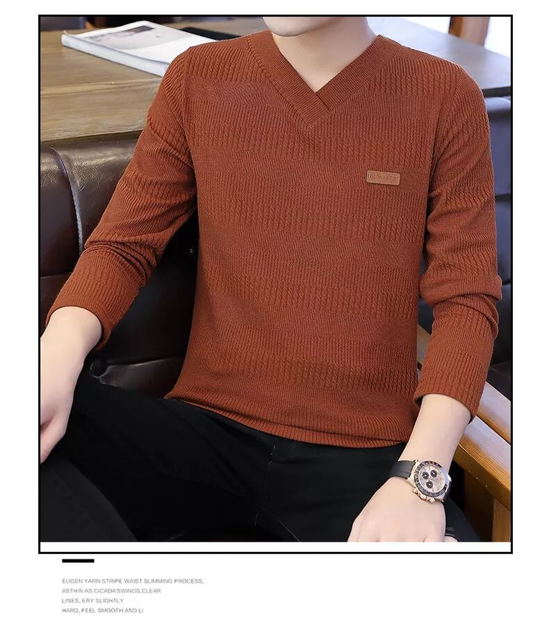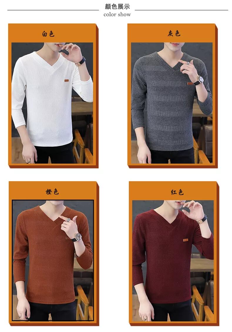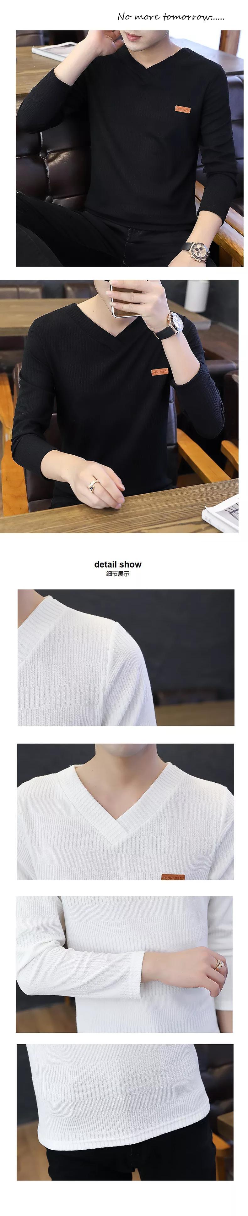 Men's long-sleeved T-shirt spring trend V-neck sweater version self-cultivation personality handsome bottoming shirt student autumn clothes ロング スプリング 春物 オータム 秋物 Vネック Tシャツ doushi60324901022