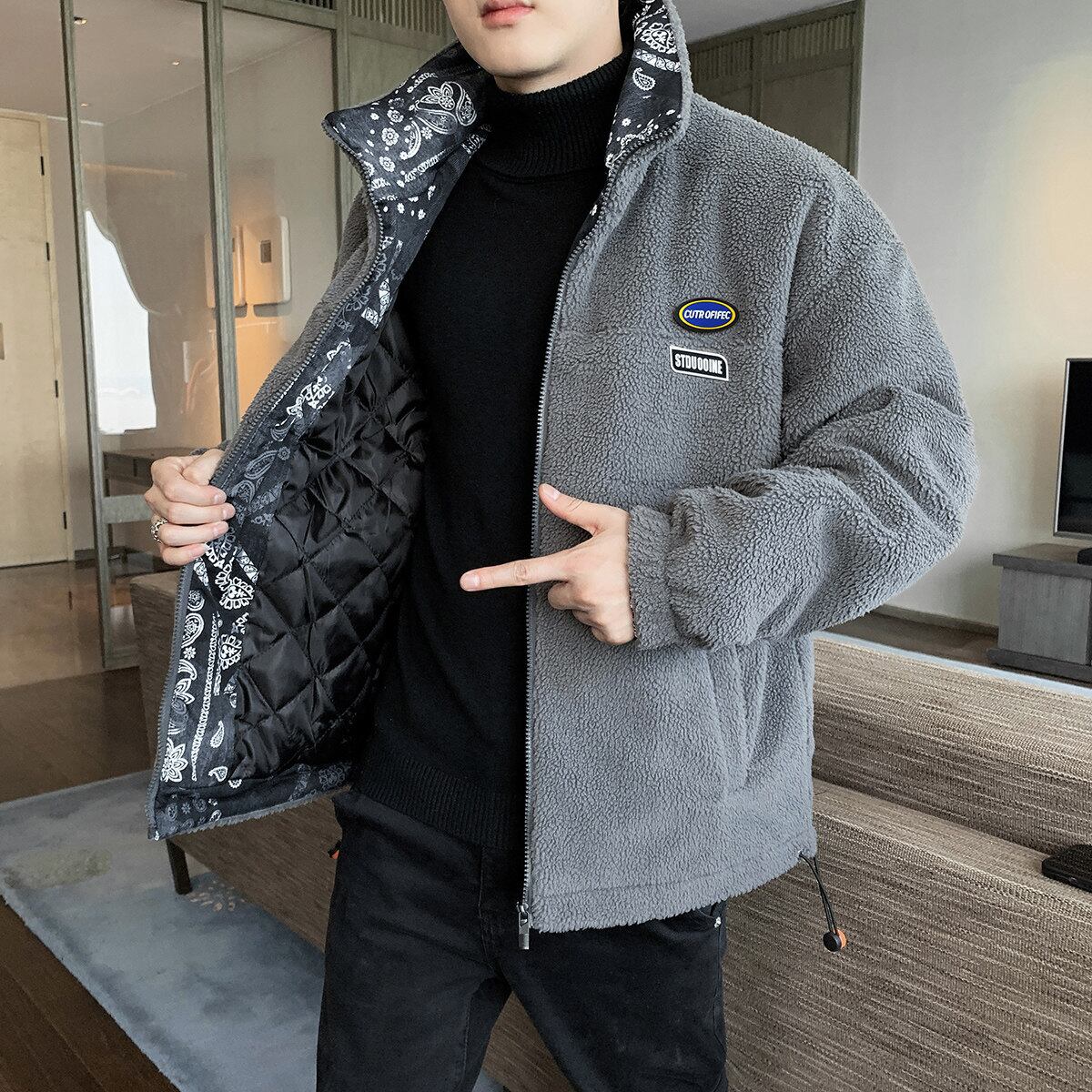 Autumn and winter teenagers white cardigan cotton coat plus velvet thick winter polar fleece student cotton coat fleece jacket men ホワイト コットン カーディガン オータム 秋物 ウィンター 冬物 doushi46520076824