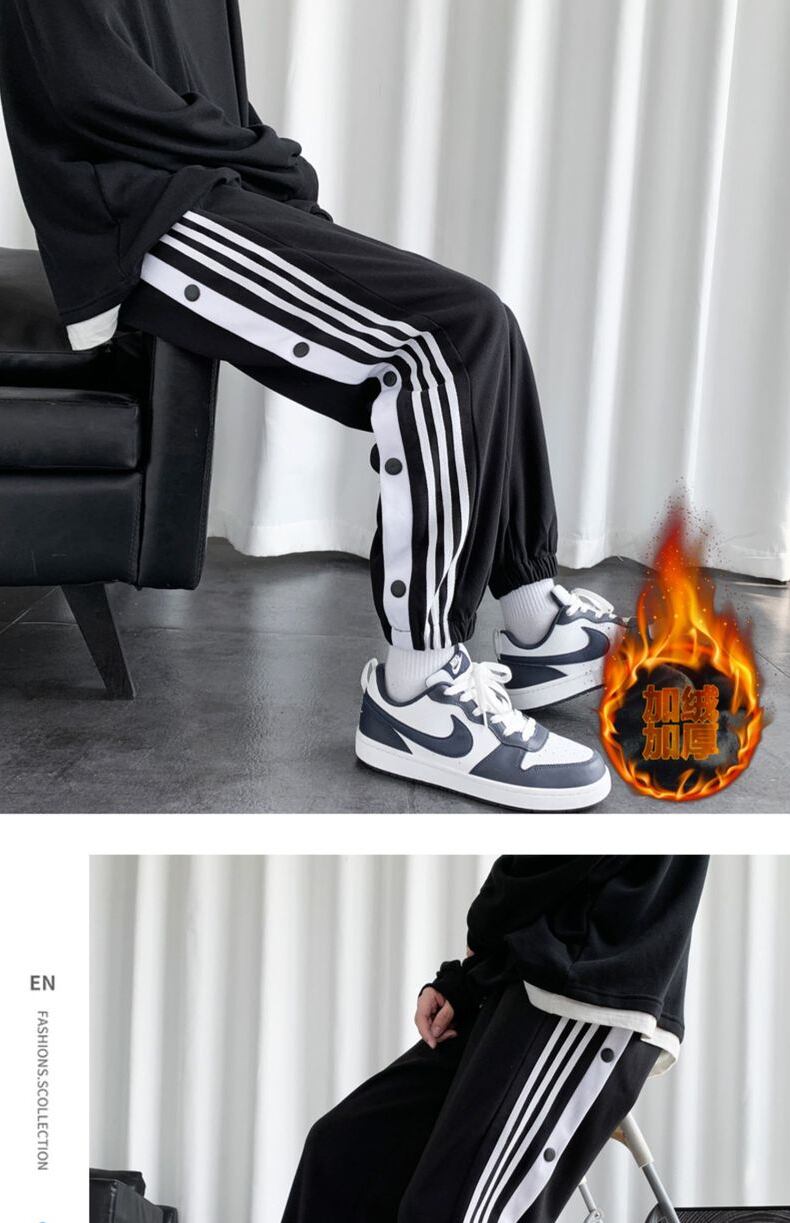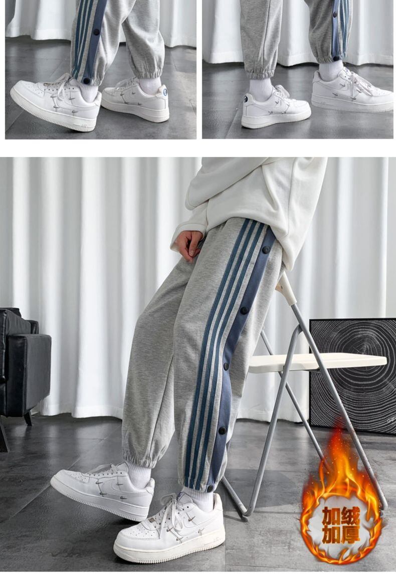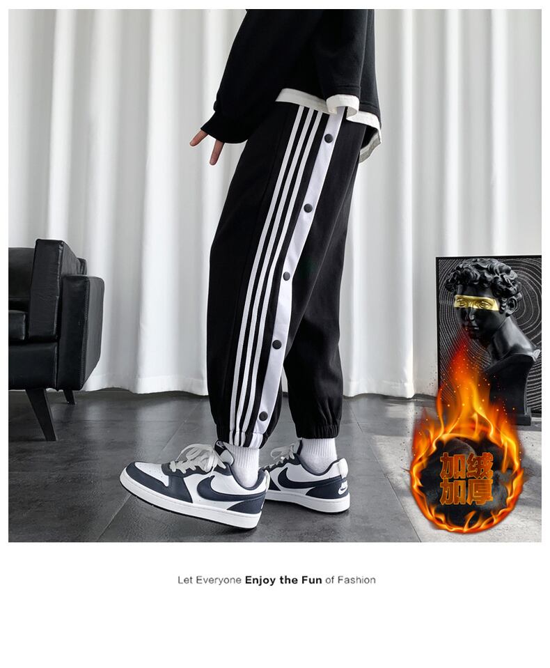 Breasted trousers men's winter plus velvet thickened harem trousers leggings youth three-bar nine-point sports sweatpants ウィンター 冬物 doushi86141740830