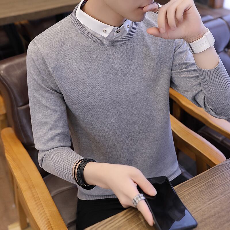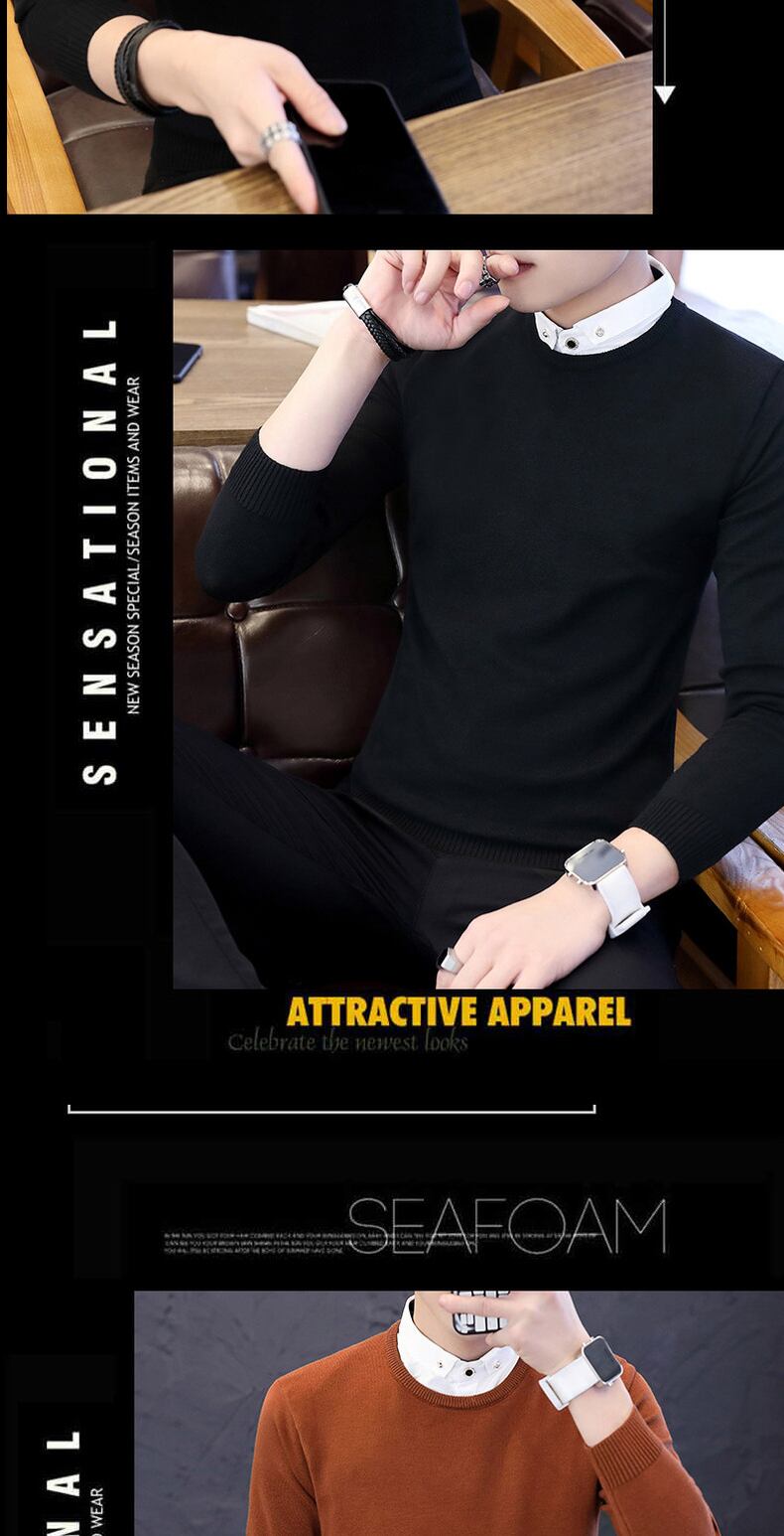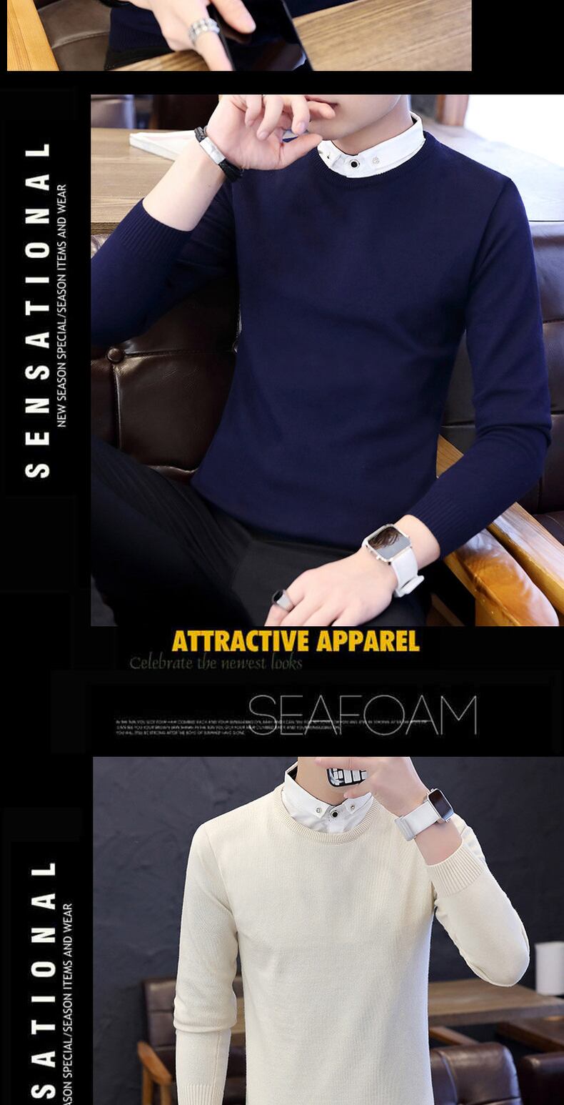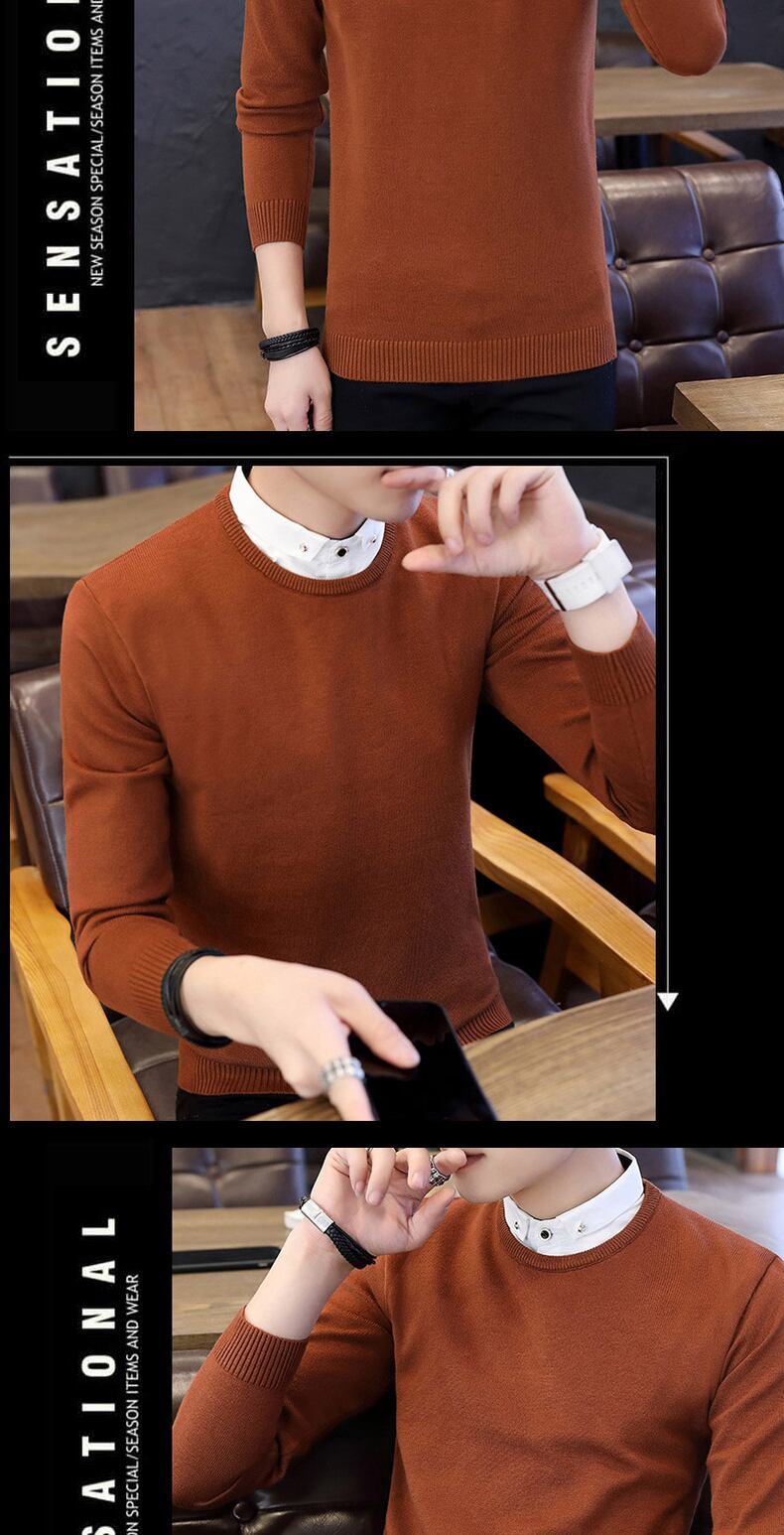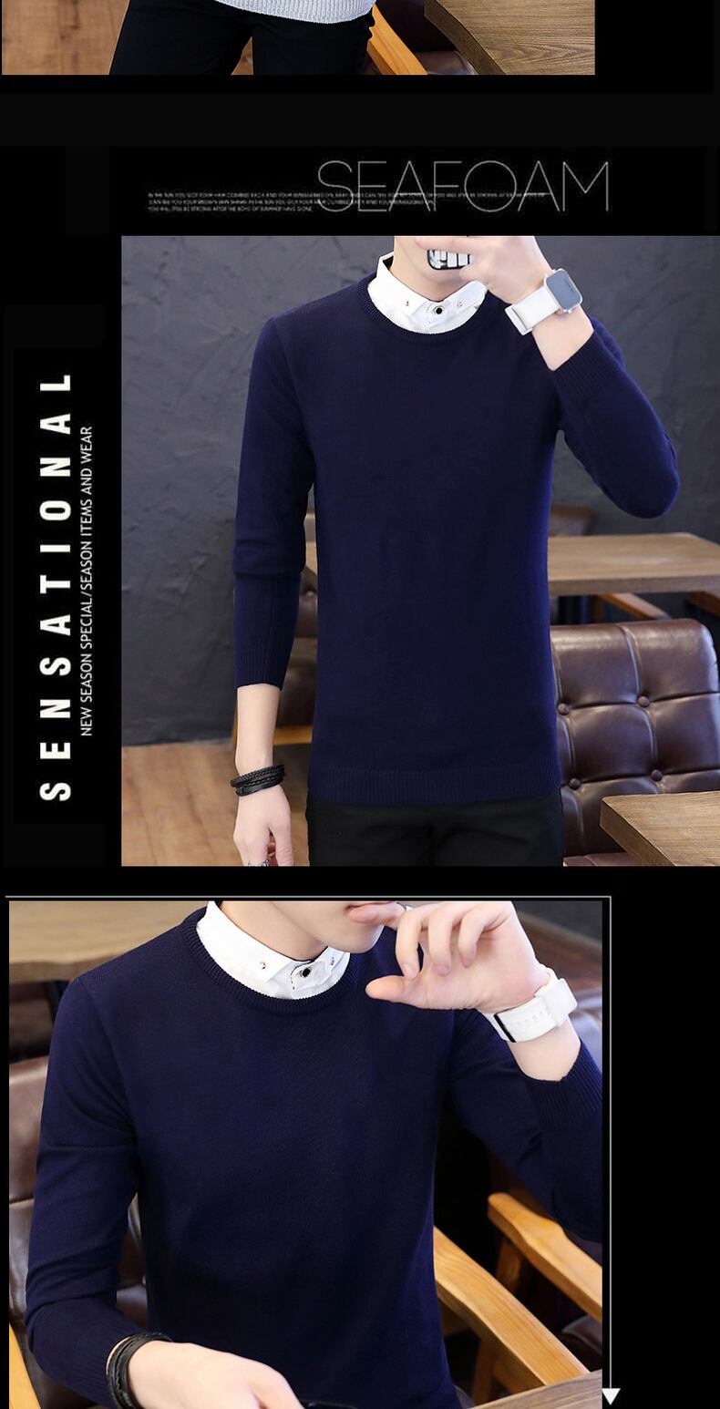 Fake two-piece sweater men's shirt collar knitted sweater men's autumn clothes autumn and winter shirt trend plus fleece sweater オータム 秋物 ウィンター 冬物 doushi61444924309