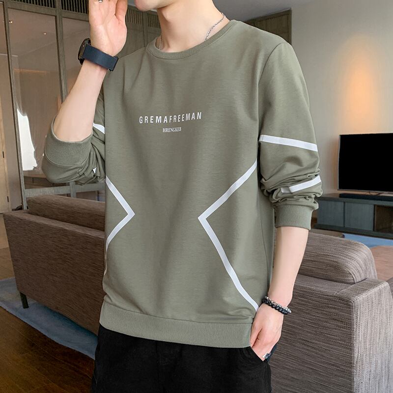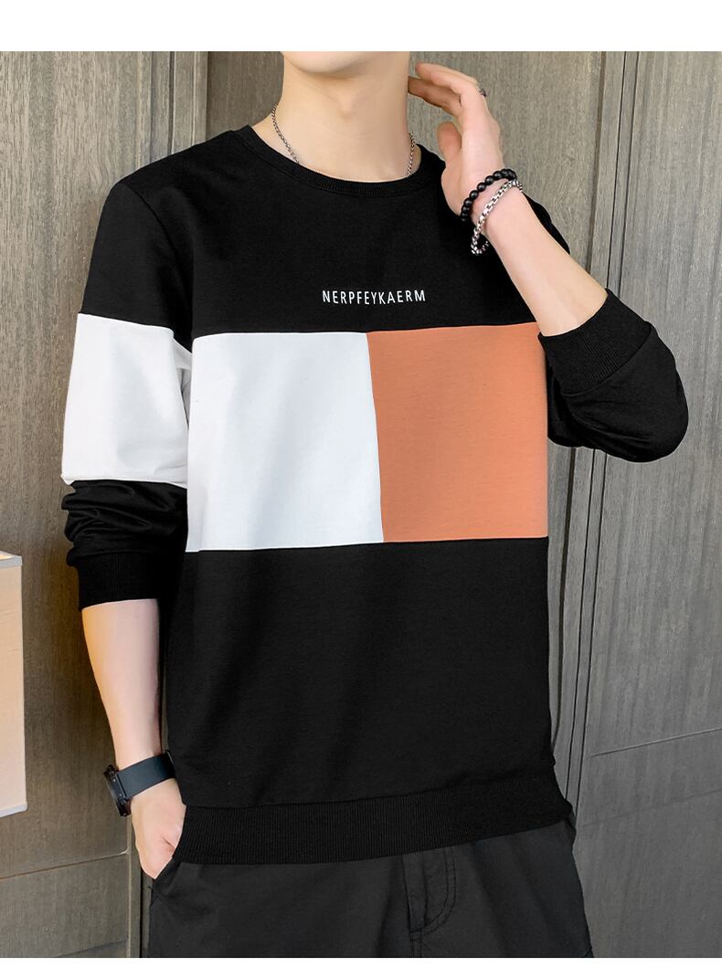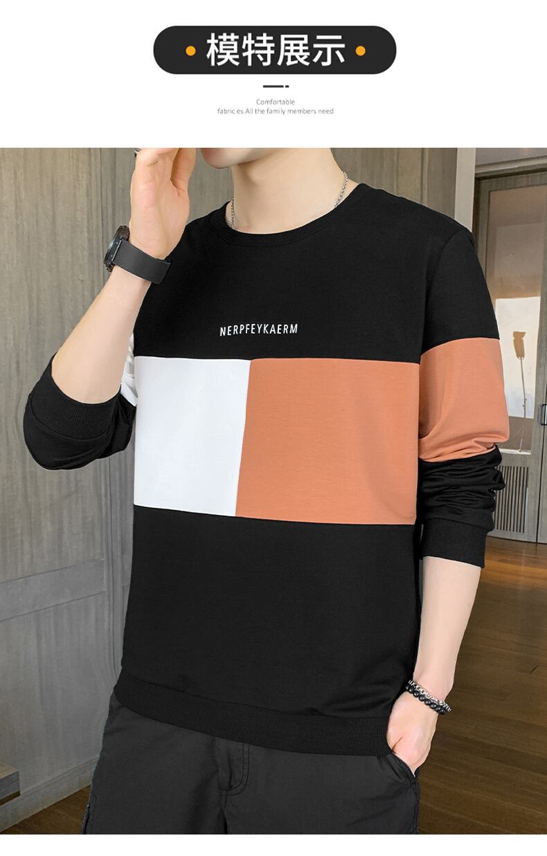 Men's fashion brand version of the trend of autumn clothes tops bottoming shirts men's spring and autumn style shirts round neck long-sleeved t-shirts ロング シャツ スプリング 春物 オータム 秋物 Oネック Tシャツ doushi15865997795