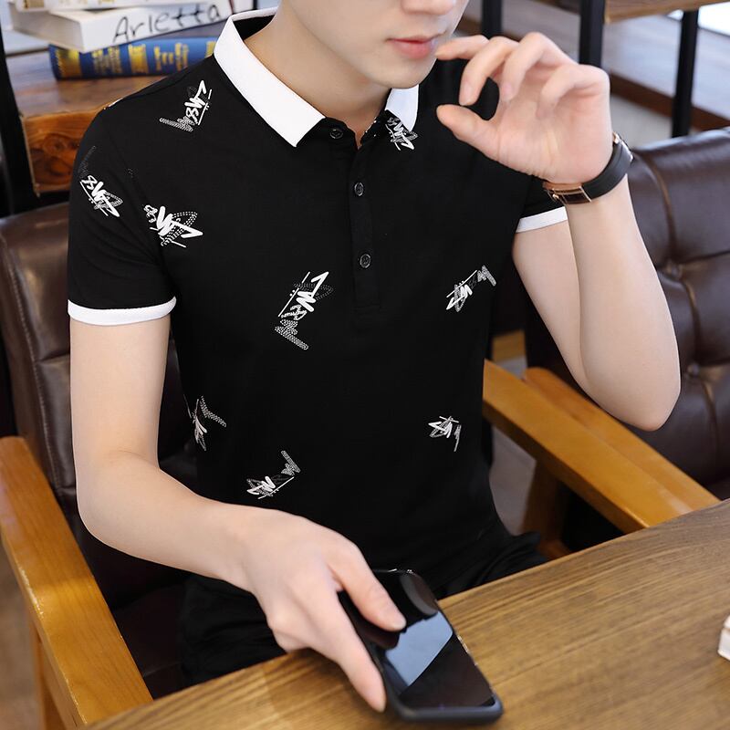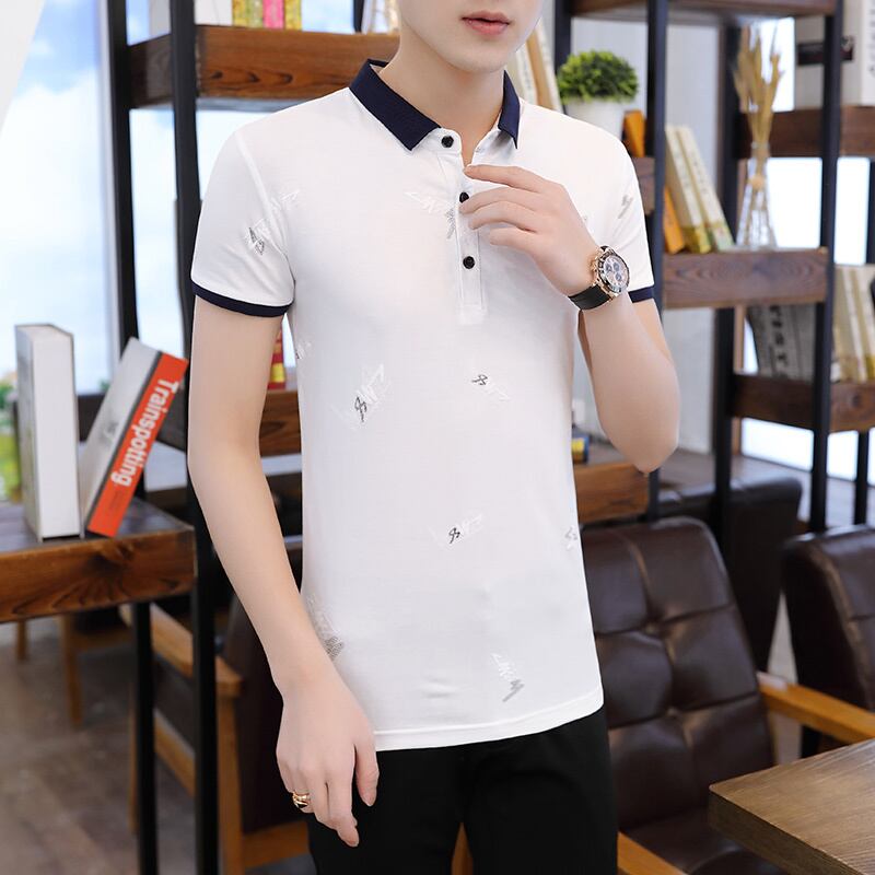 2022 Men's Ice Silk Short Sleeve T-Shirt Men's Lapel POLO Shirt Summer Trend Shirt Collar Collar T-Shirt Men's ショート 半袖 ハーフスリーブ サマー 夏物 シルク Tシャツ doushi6129622994