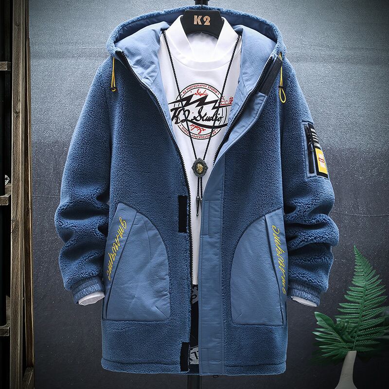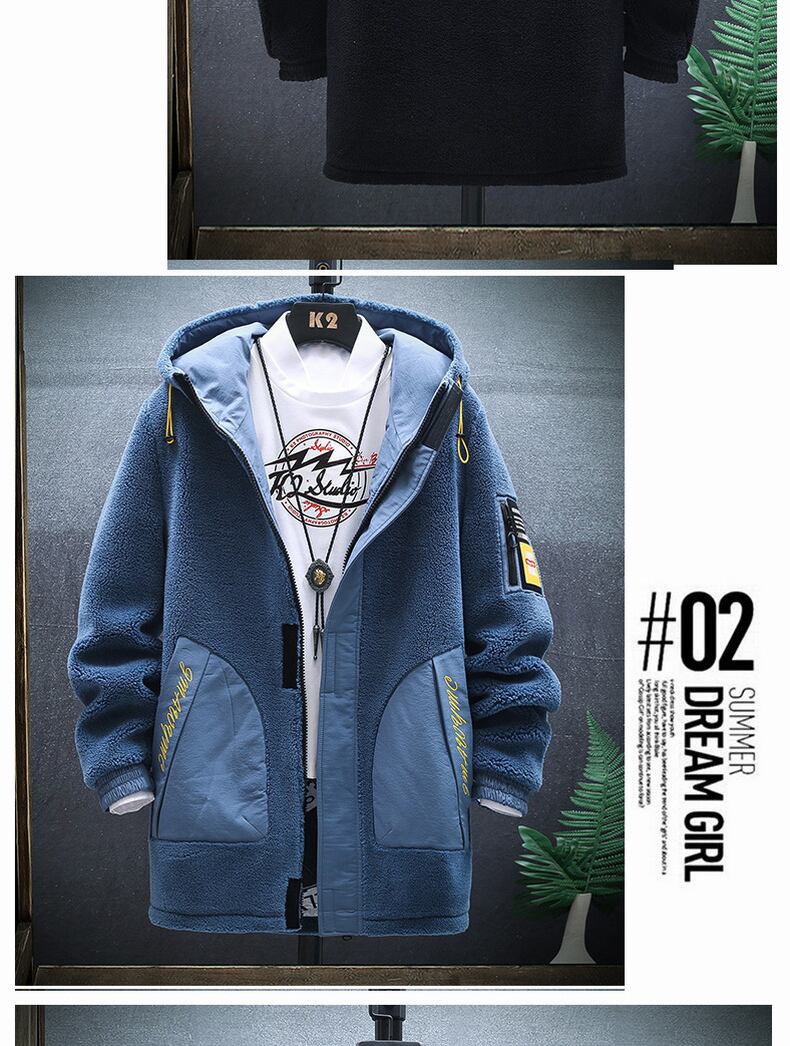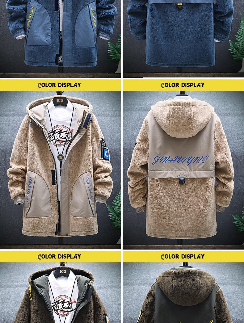 2022 new men's plus velvet thickened medium and long grain velvet jacket men's winter clothes padded jacket lamb plush padded jacket ロング ウィンター 冬物 doushi52417625257