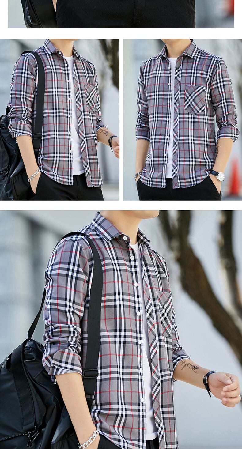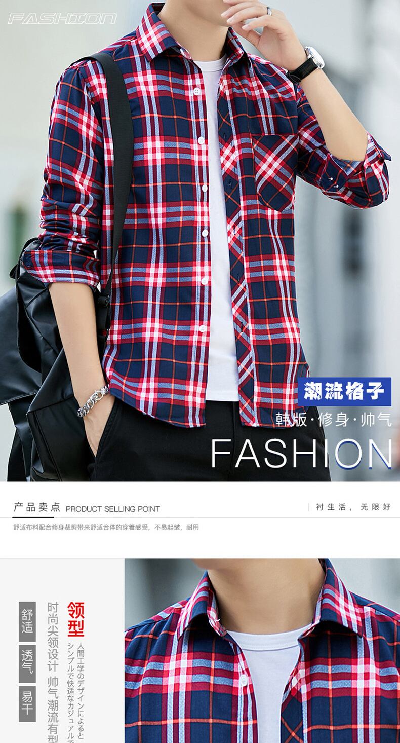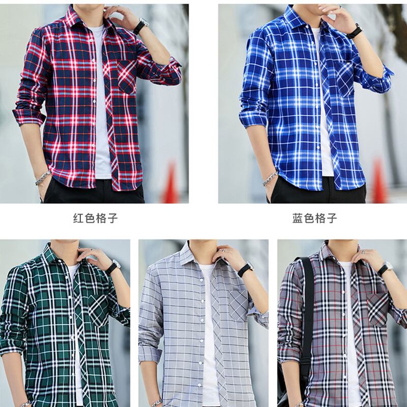 Men's long-sleeved plaid shirt fir slim thin section youth long axis resting young people inch village squat shirt soil ロング スリム doushi47788080186
