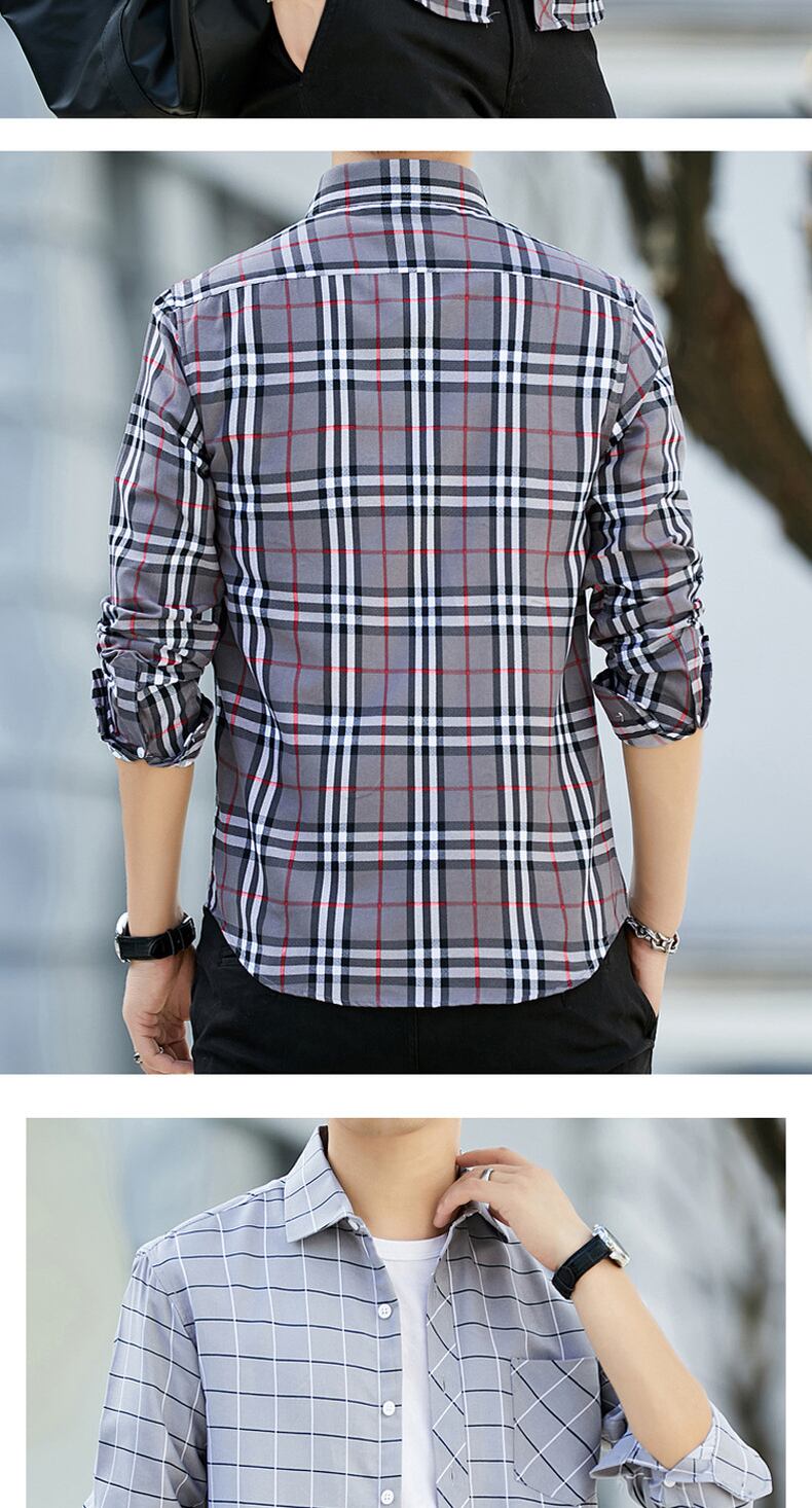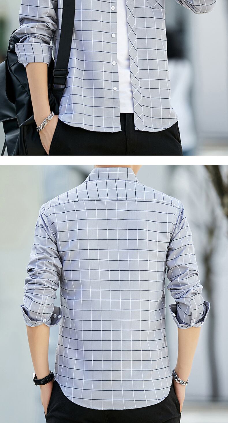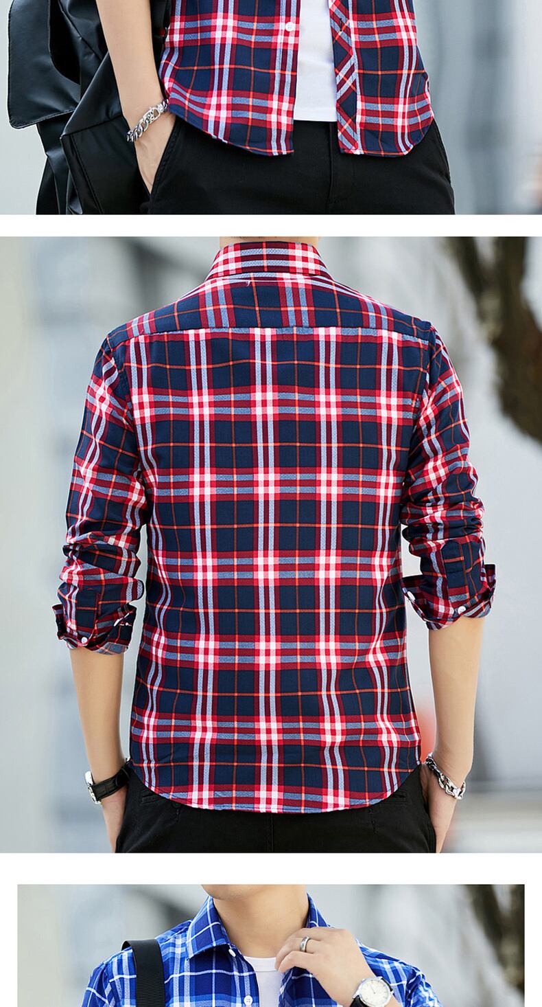 Men's long-sleeved plaid shirt fir slim thin section youth long axis resting young people inch village squat shirt soil ロング スリム doushi47788080186