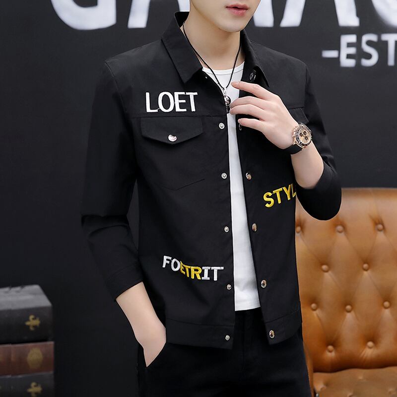 Long-sleeved shirt jacket men's spring tide brand thin tooling jacket top student version personality embroidery shirt ロング 刺繍 スプリング 春物 doushi12426042935
